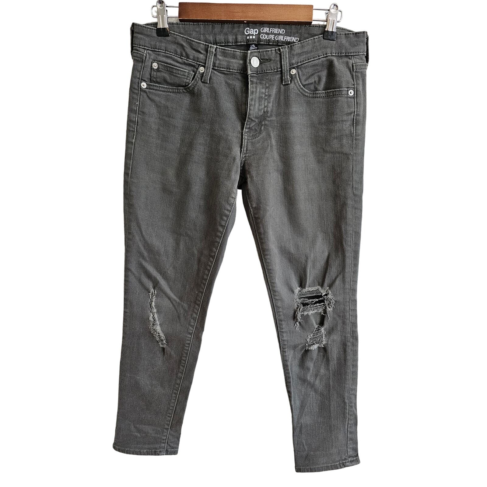 Gap Womens Sz 6 Girlfriend Fit Skinny Jeans Distressed Dark Green