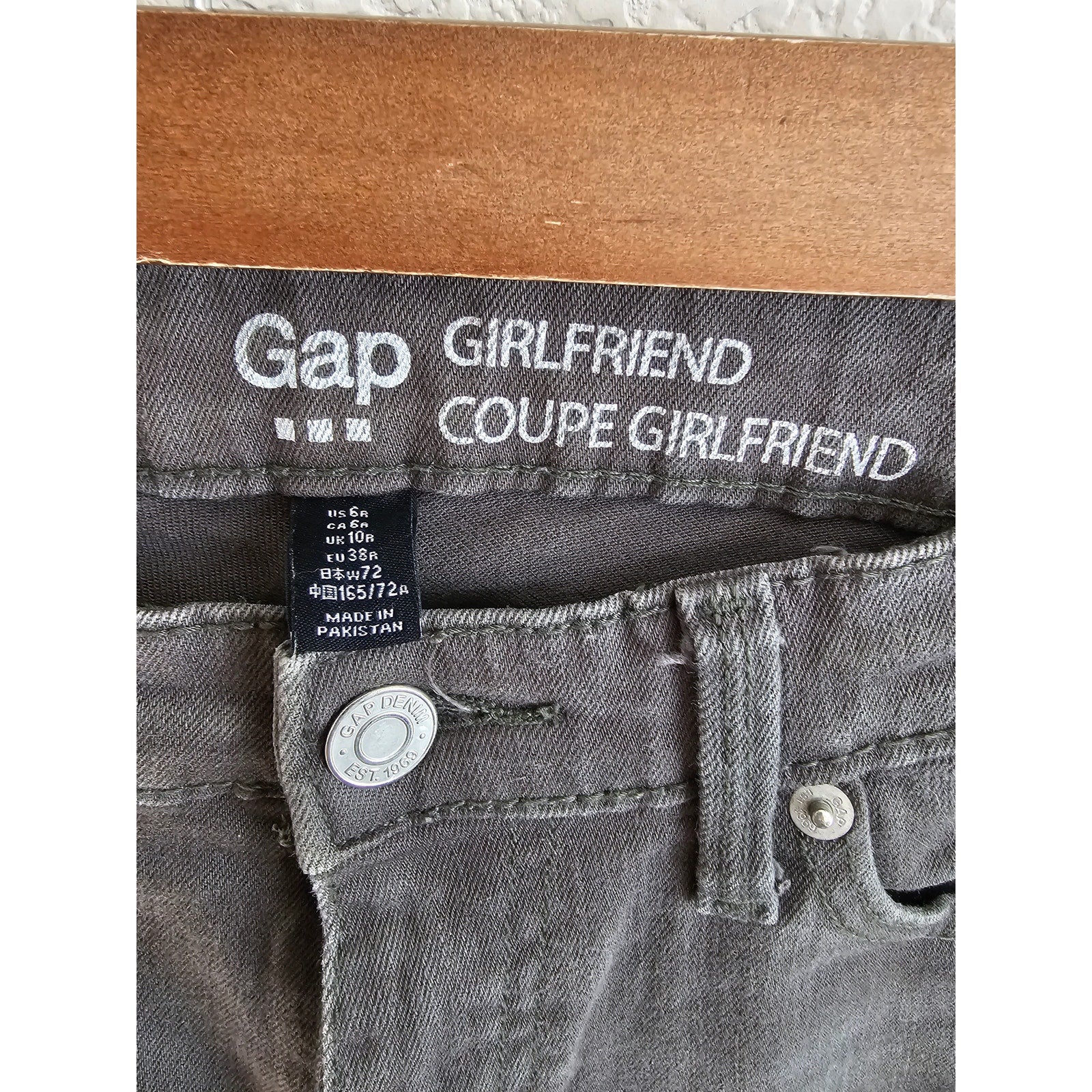 These Gap Women's Skinny Jeans in a size 6 are a must-have addition to your wardrobe. The trendy distressed dark green color is perfect for any occasion, whether it's a night out with friends or a casual day at work. The girlfriend fit style provides a comfortable and flattering fit, making these jeans a great choice for any body type. These jeans are made with high-quality materials that are built to last, so you can enjoy them for years to come. They feature a classic five-pocket design and a button fly closure. The versatile color and style make them easy to pair with any top or accessory, so you can create a variety of stylish looks. Don't miss out on the chance to add these Gap Women's Skinny Jeans to your collection today!