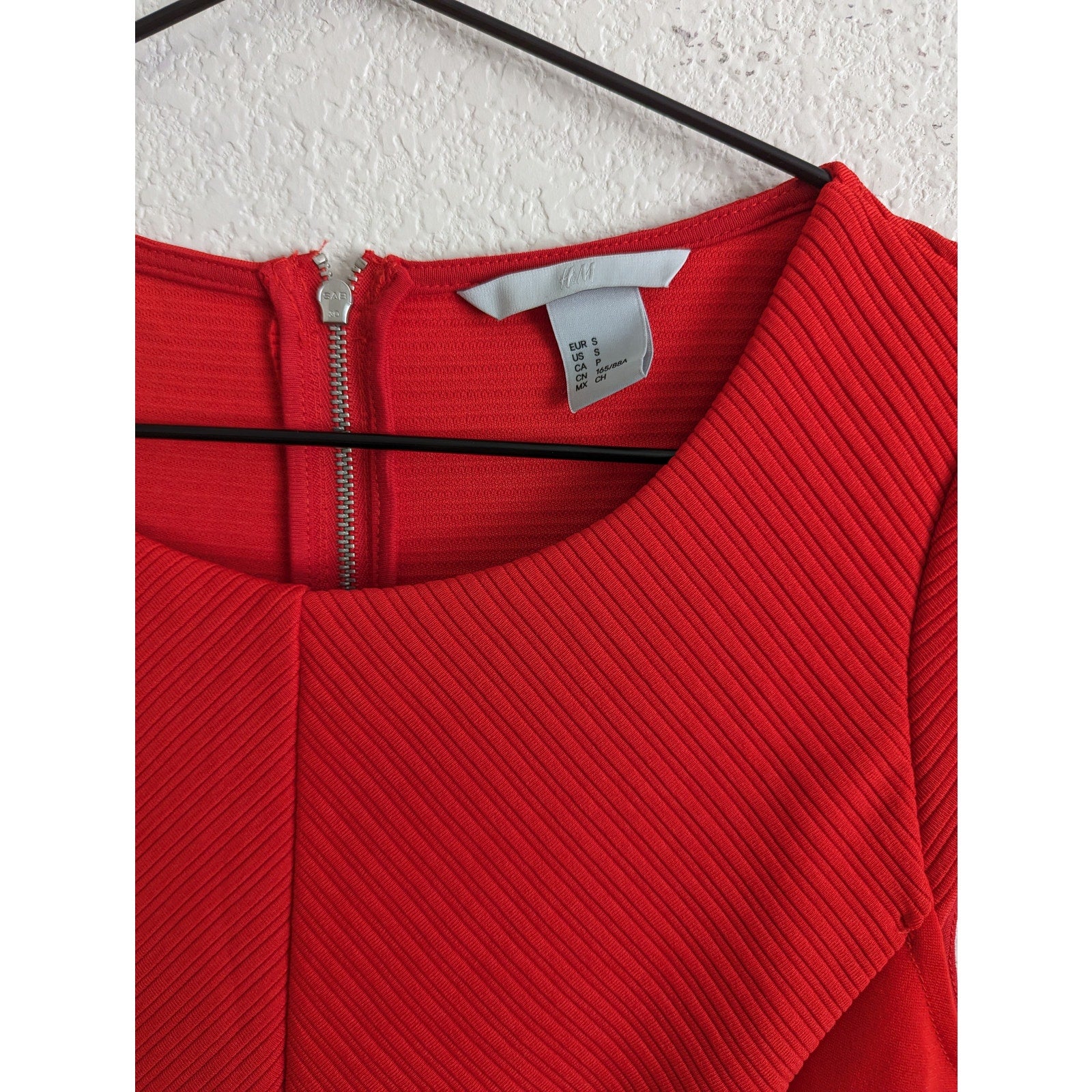 H&M Womens Sz S Knee Length Sheath Dress Solid Red