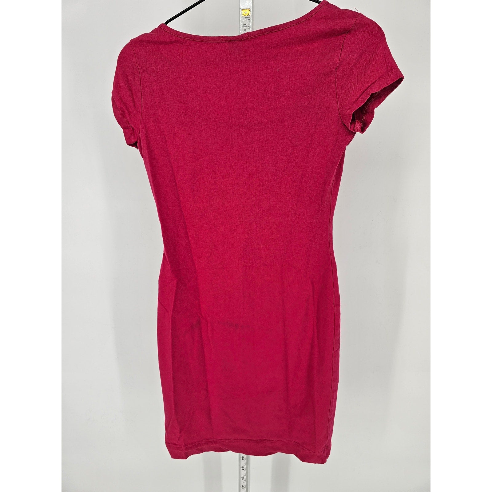H&M Womens Sz XS Mini Dress Bright Pink Short sleeve Bodycon