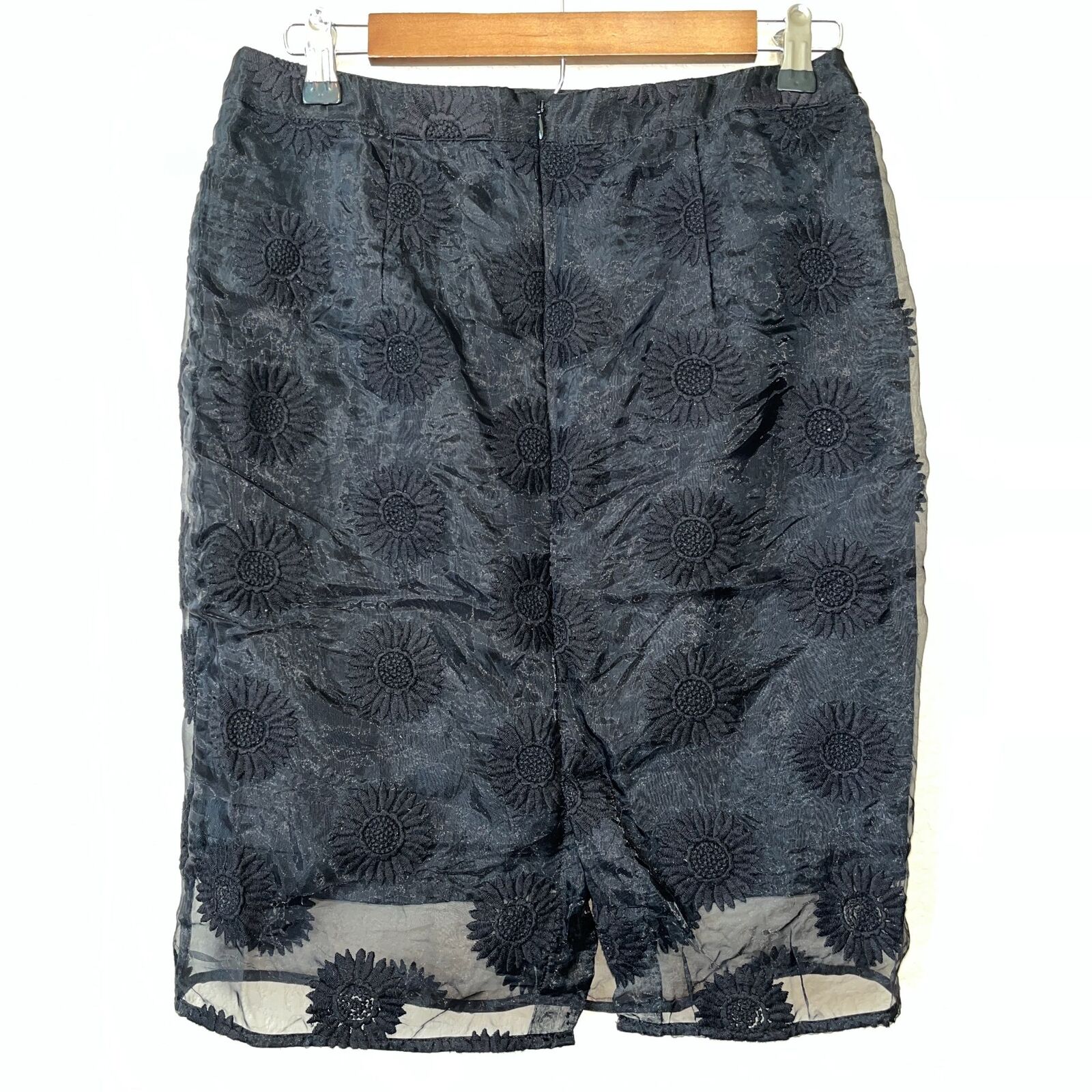 Halogen Womens Sz 8 Black Pencil Skirt Sunflower Flower Applique
