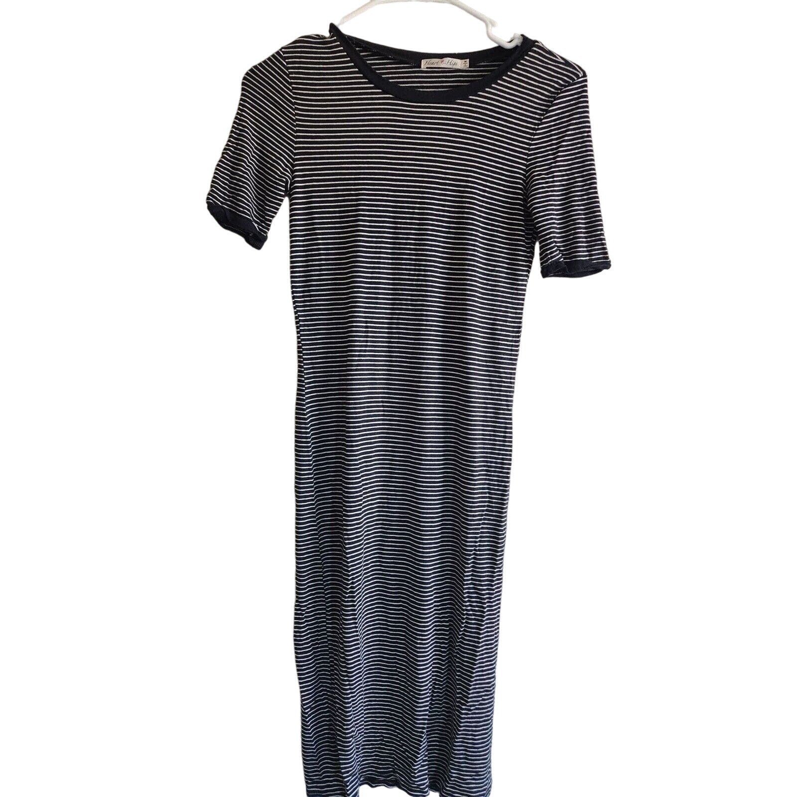 Heart & Hips Womens Sz M Midi T shirt dress Black White Striped