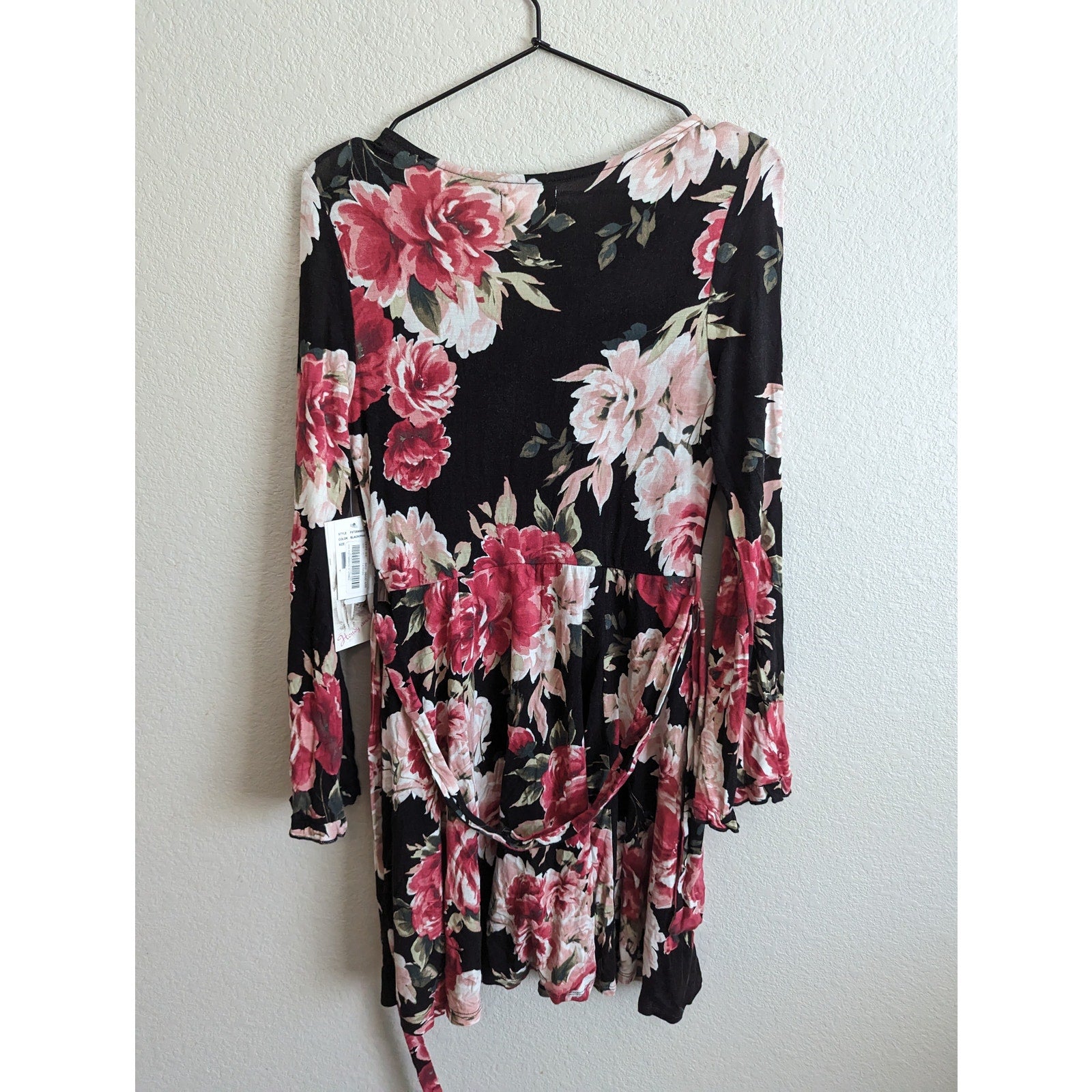 Honey & Rosie Womens Sz M Knee Length Long Sleeve Dress Red Pink Floral NEW