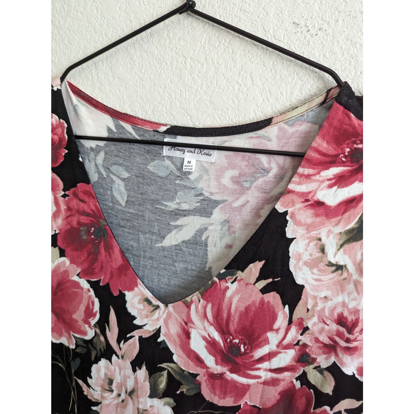 Introducing a stunning knee-length dress by Honey & Rosie, a must-have for any fashion-forward woman. This dress features a beautiful red and pink floral design, perfect for any occasion. Its long sleeves add elegance and comfort, making it a great option for both day and night events. The size medium ensures a flattering fit for most body types. Get this brand new dress today and elevate your wardrobe with a touch of femininity and sophistication.