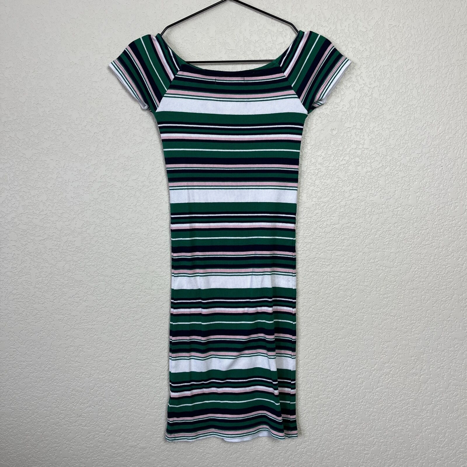 House Womens Sz XS Ribbed Shirt Dress Pink Green Striped Vintage Y2K
