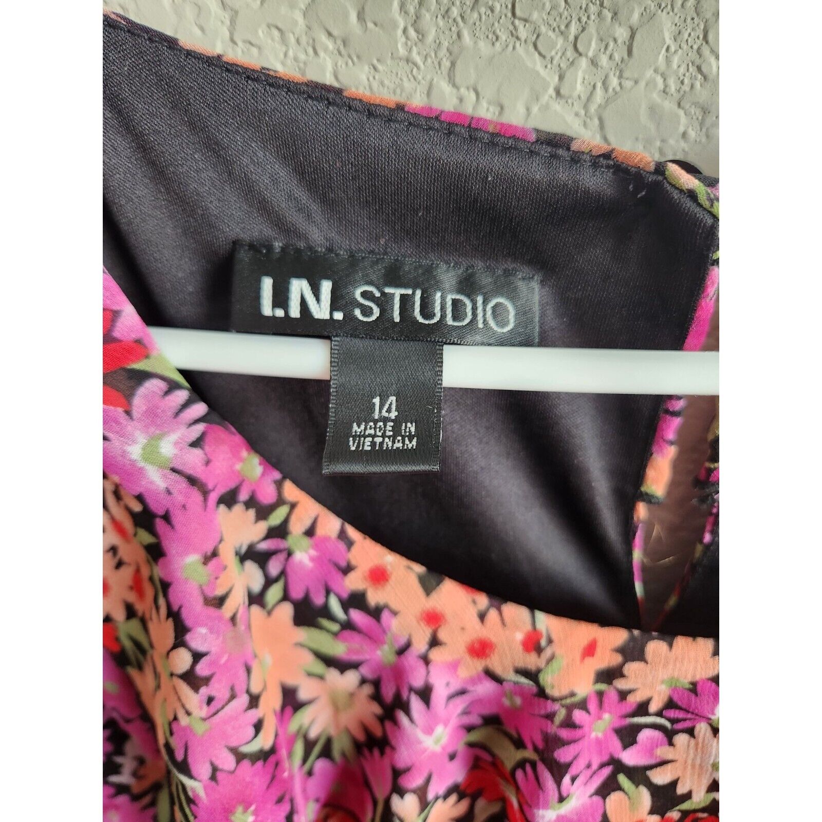 I.N. Studio Womens Sz 14 Knee Length Summer Dress Pink Floral Sleeveless