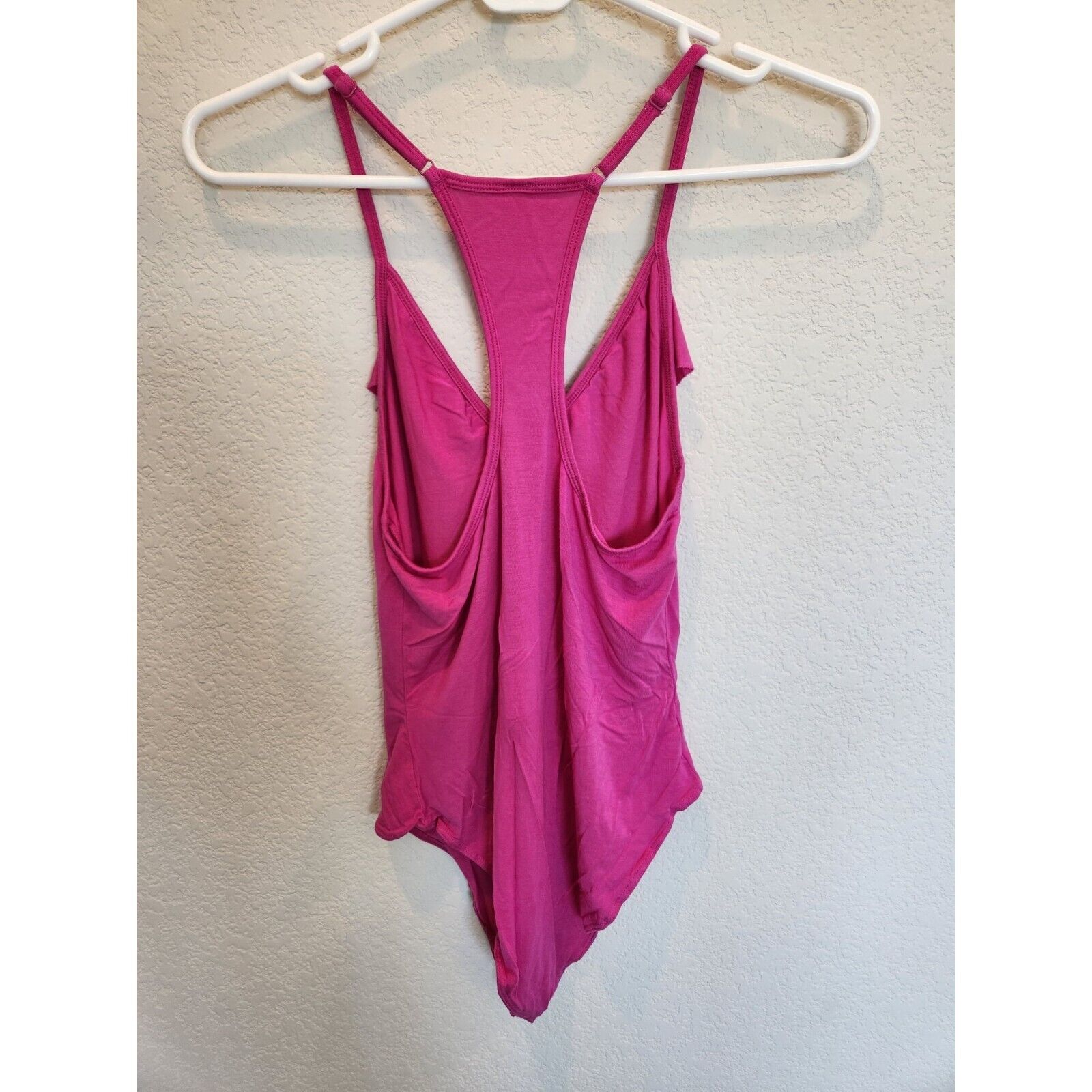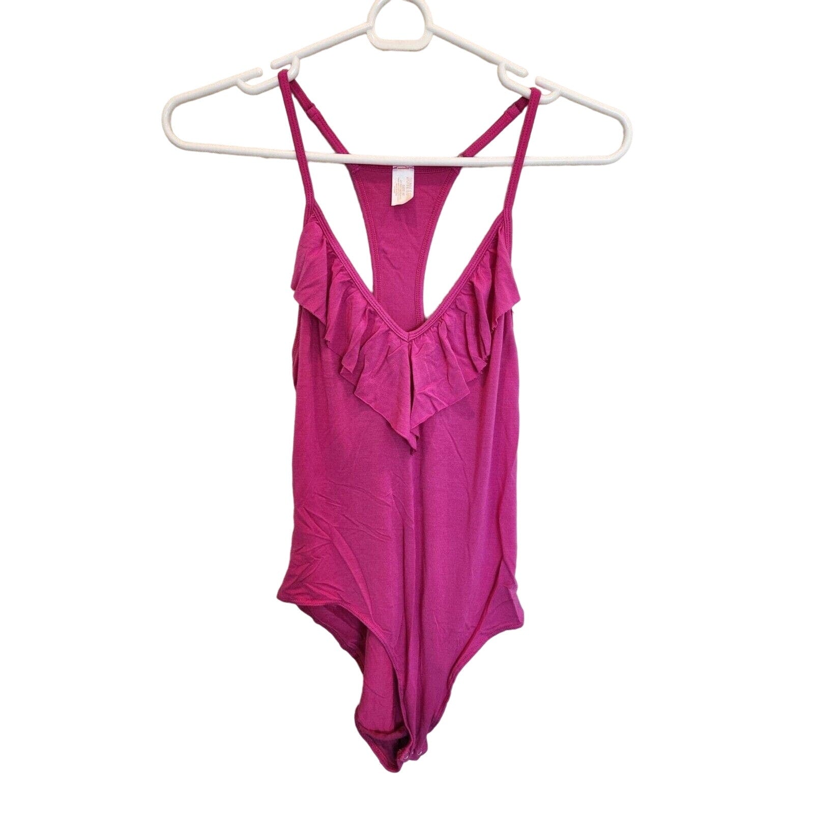Jasmine & Ginger Womens Sz M Bodysuit Blouse Pink Ruffled Spaghetti Strap