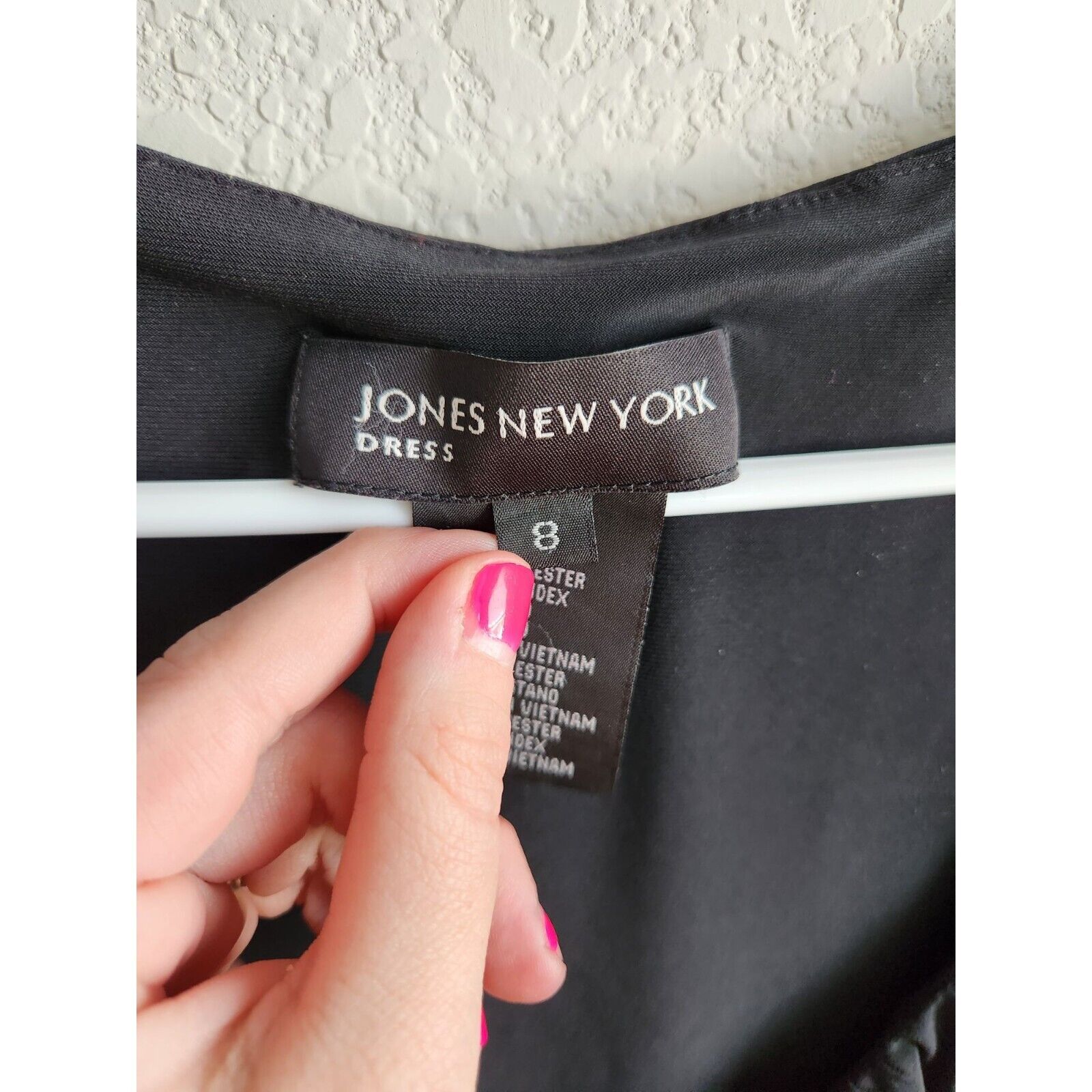 Jones New York Womens Sz 8 Midi Length Long Sleeve Dress Solid Black