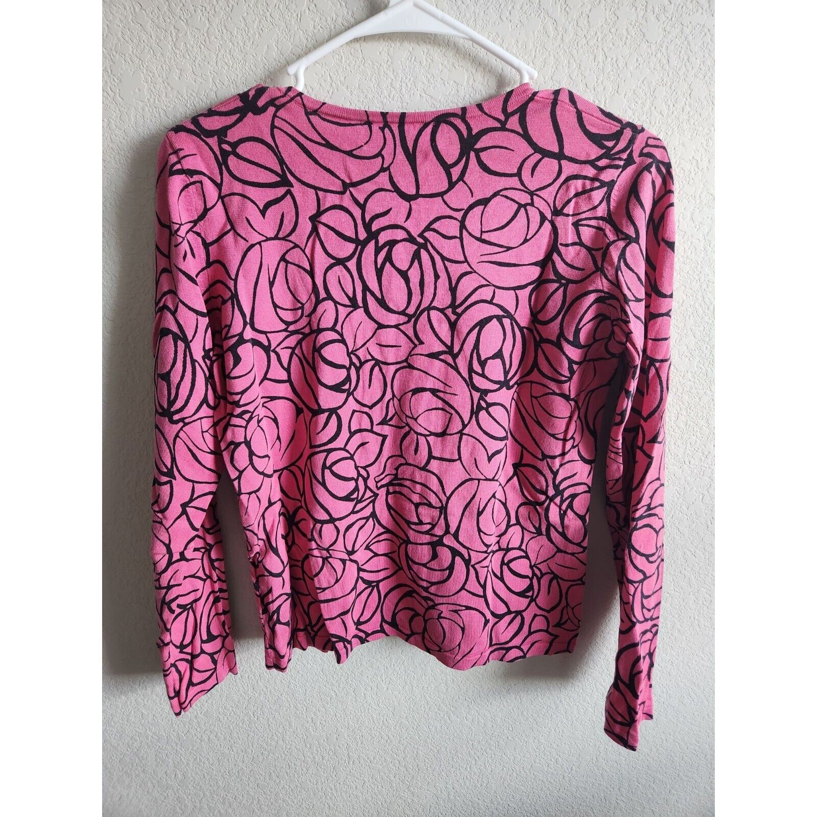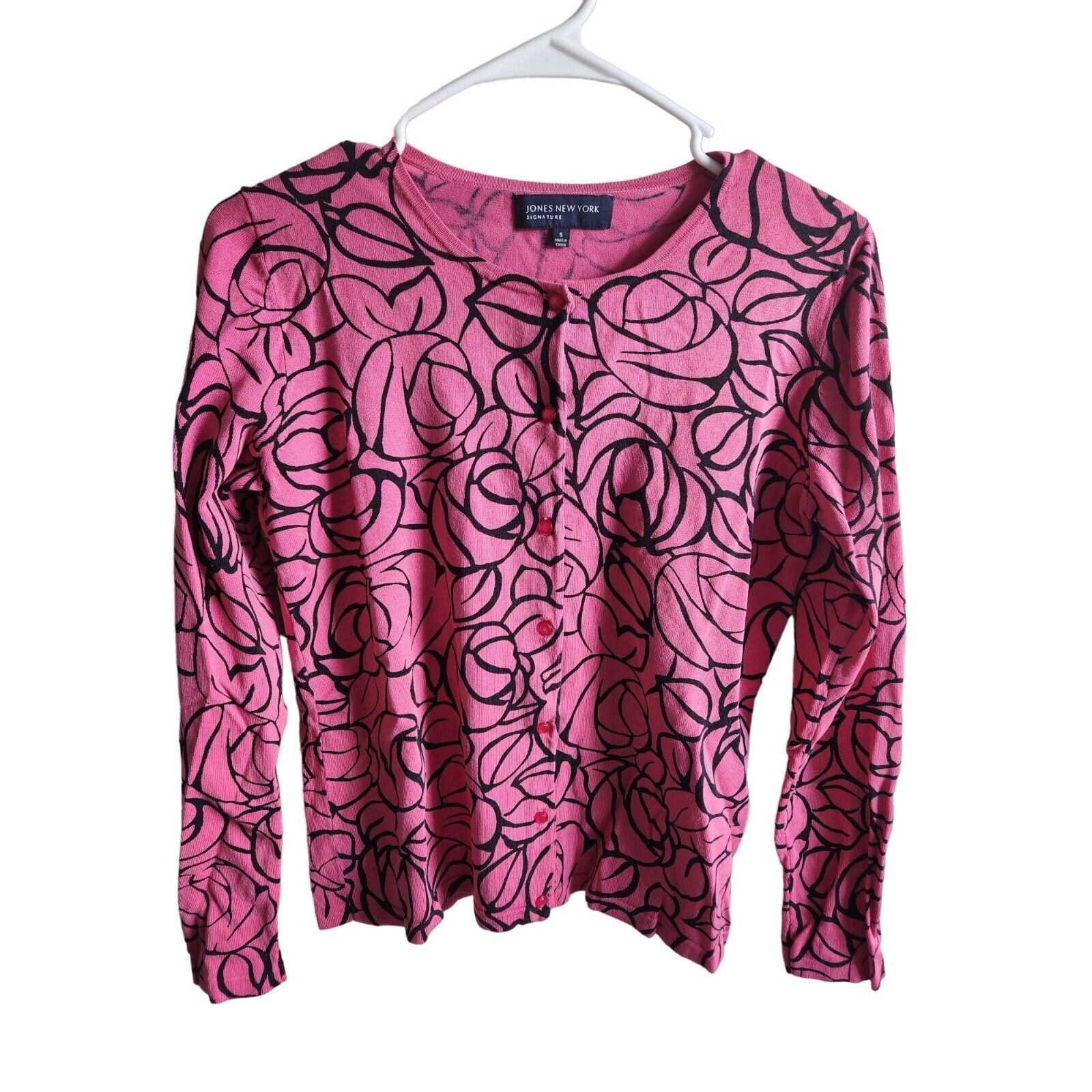 Jones New York Womens Sz S Button Front Cardigan Sweater Pink Black Floral