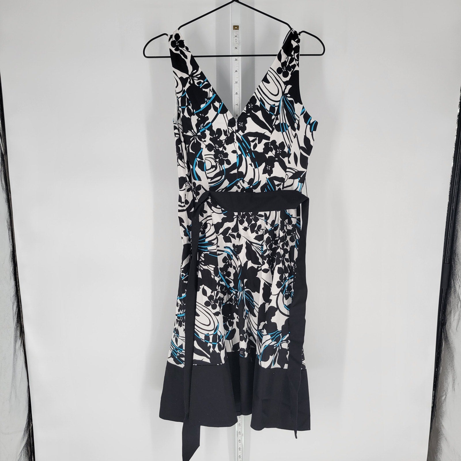 Jones Wear Dress Womens Sz 8 Midi Length Sleeveless Dress Black Blue Floral
