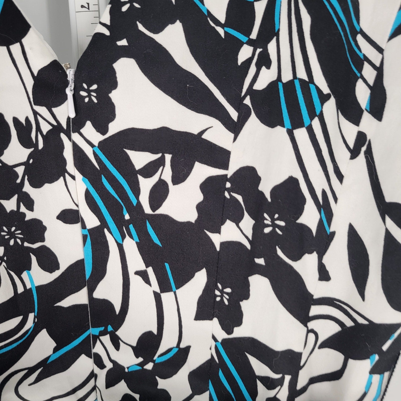 This beautiful sleeveless dress by Jones Wear is a must-have for any fashion-forward woman. The dress features a stunning black and blue floral pattern that is sure to turn heads. With a midi length, this dress is perfect for any occasion, whether it's a night out with friends or a formal event. Crafted with care, this dress is made to last and will be a cherished addition to any wardrobe. The dress is a size 8 and is designed to flatter any body type. Don't miss out on this stylish and sophisticated dress that will make you look and feel amazing.