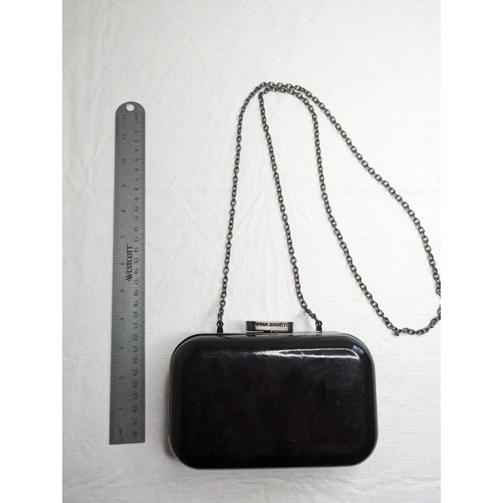 Kirna Zabete At Target Clutch Purse - Black Patent Hard Case Chain Strap