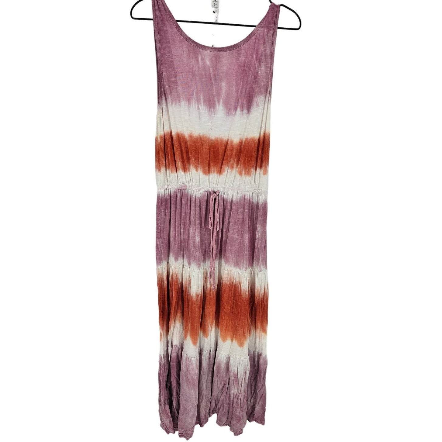 Knox Rose Womens Sz M Sleeveless Midi Dress Tie Dye Pink Orange Low Back