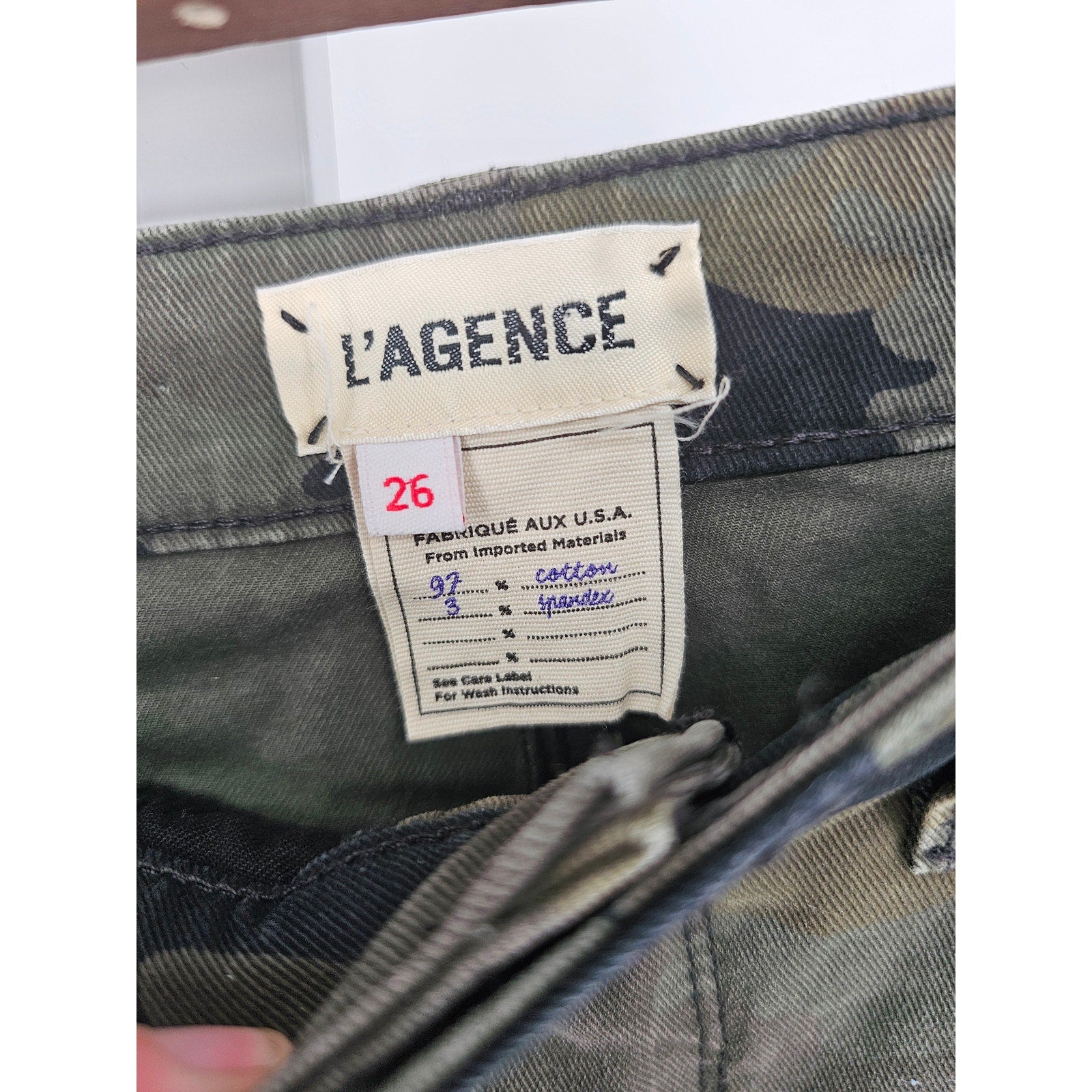 L'Agence Womens Sz 26 Skinny Jeans Camo Print Green Gold