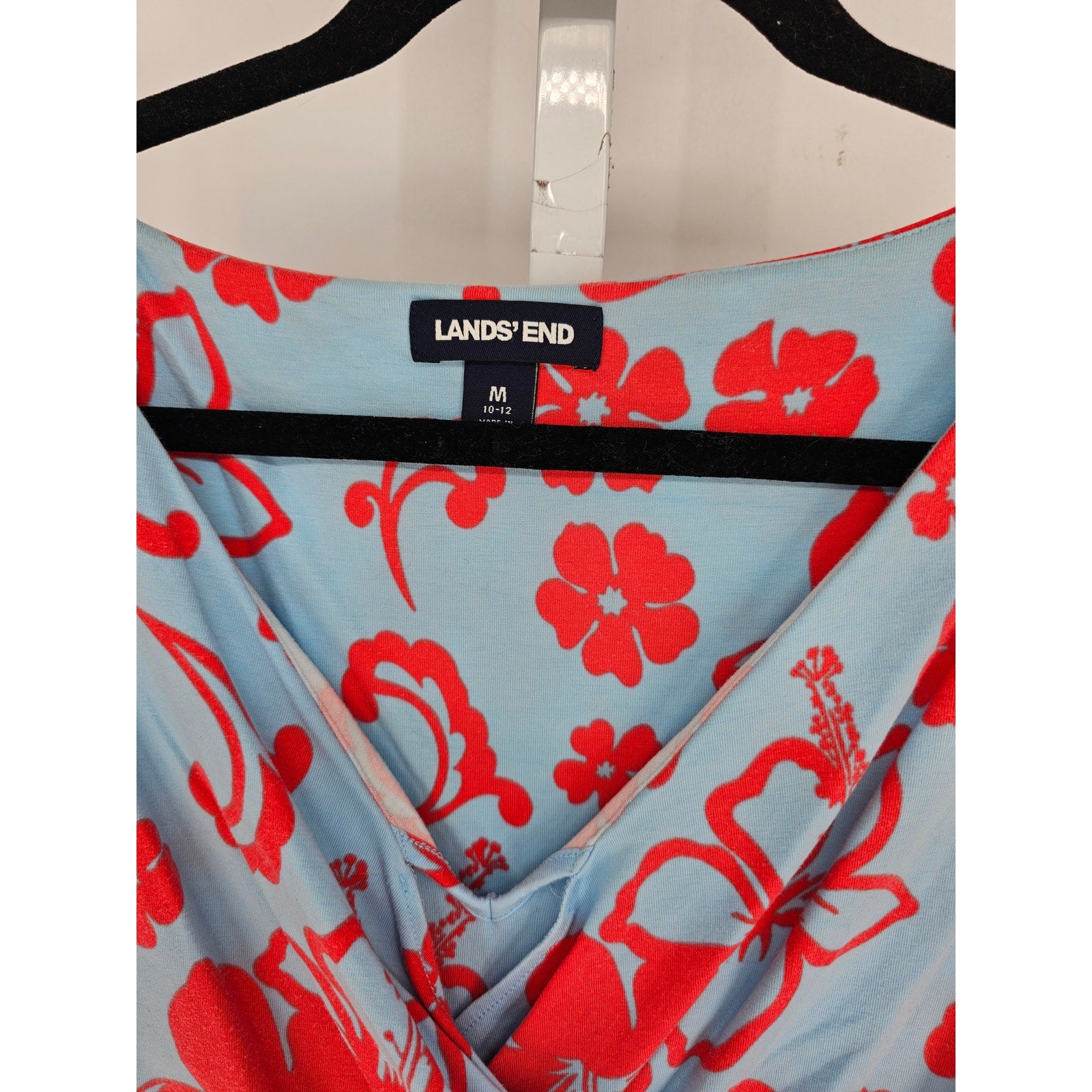 Add a touch of paradise to your wardrobe with this Lands' End women's dress! The vibrant blue and red tropical floral pattern is perfect for warm weather.