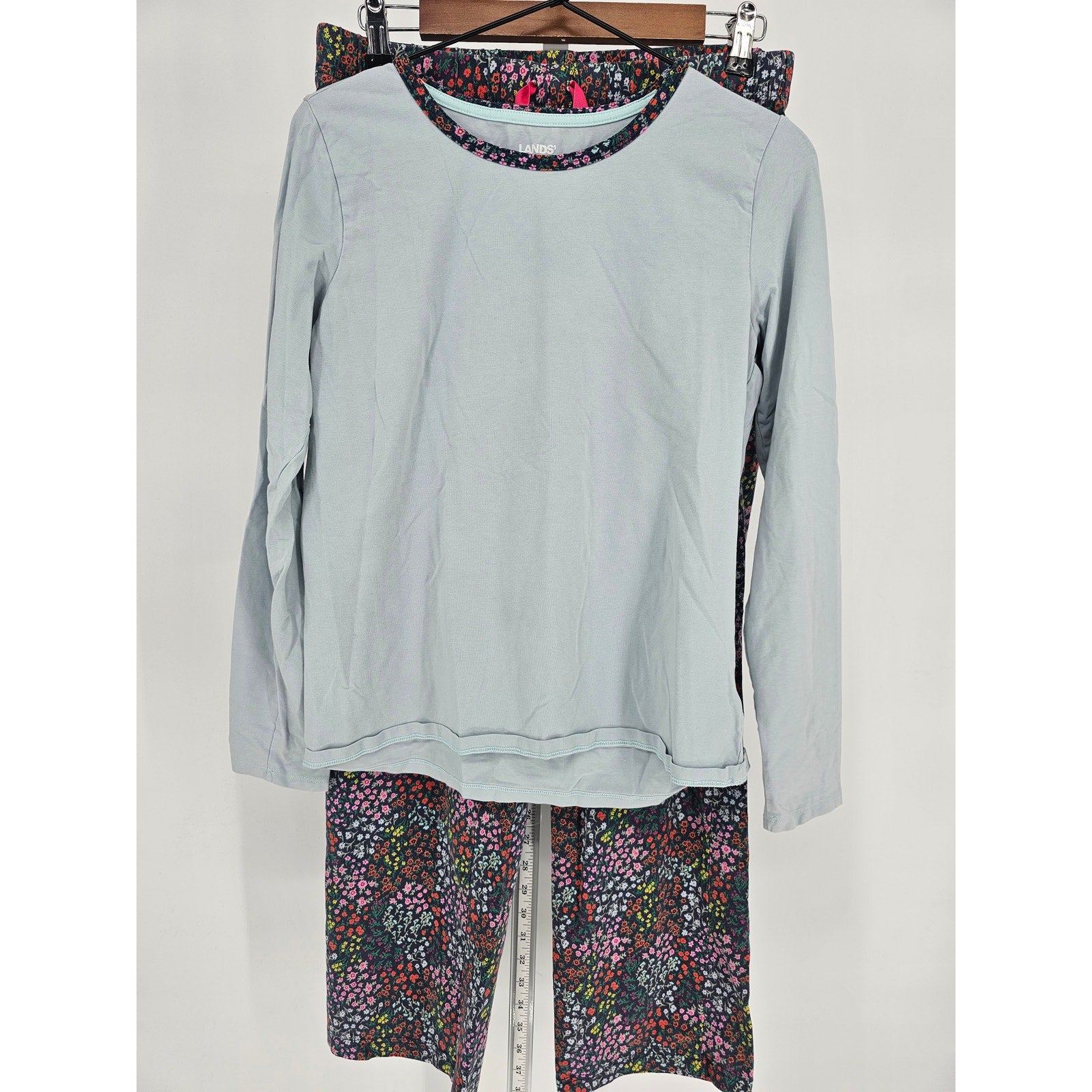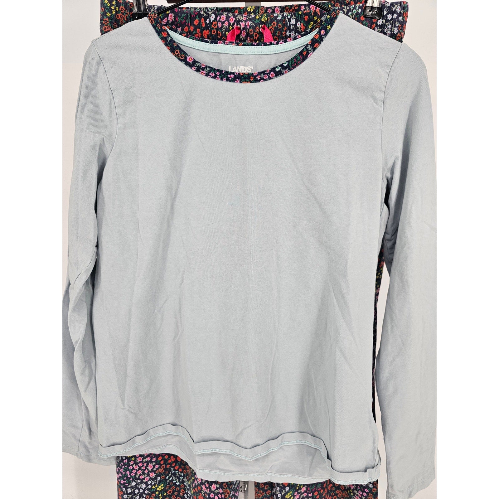 Lands End Womens Sz S Long Sleeve Pajama Set Blue Floral Lounge Pants