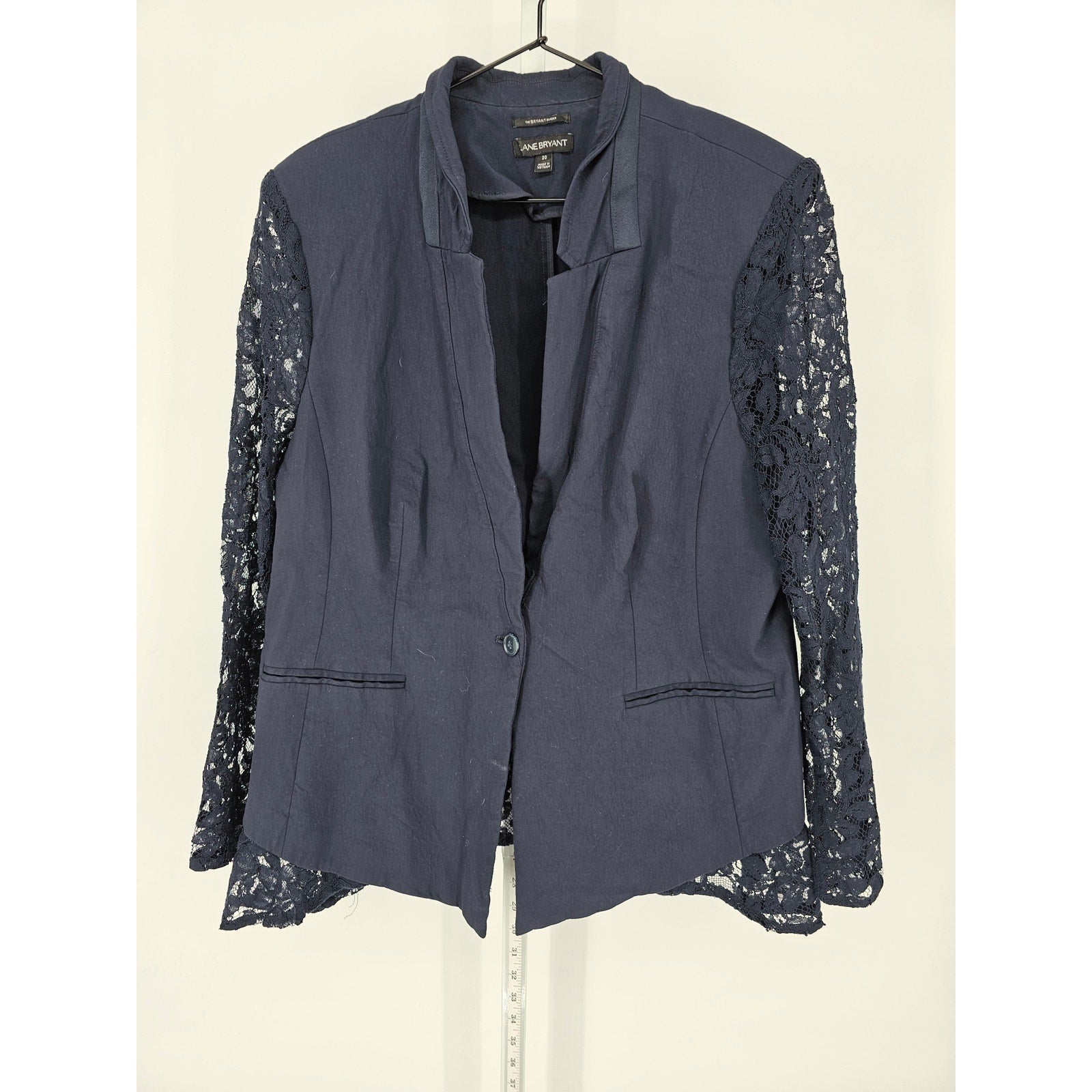 Lane Bryant Womens Sz 20 The Bryant Blazer Navy Blue Lace Sleeves