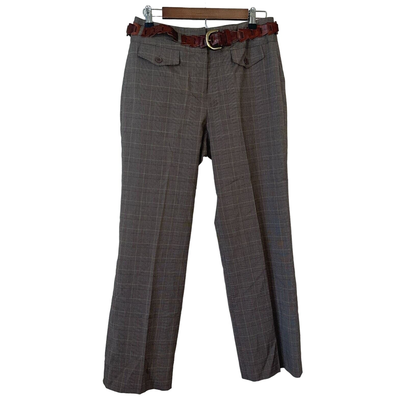 Larry Levine Womens Sz 10 Dress Pants Brown Taupe Plaid w/ Belt