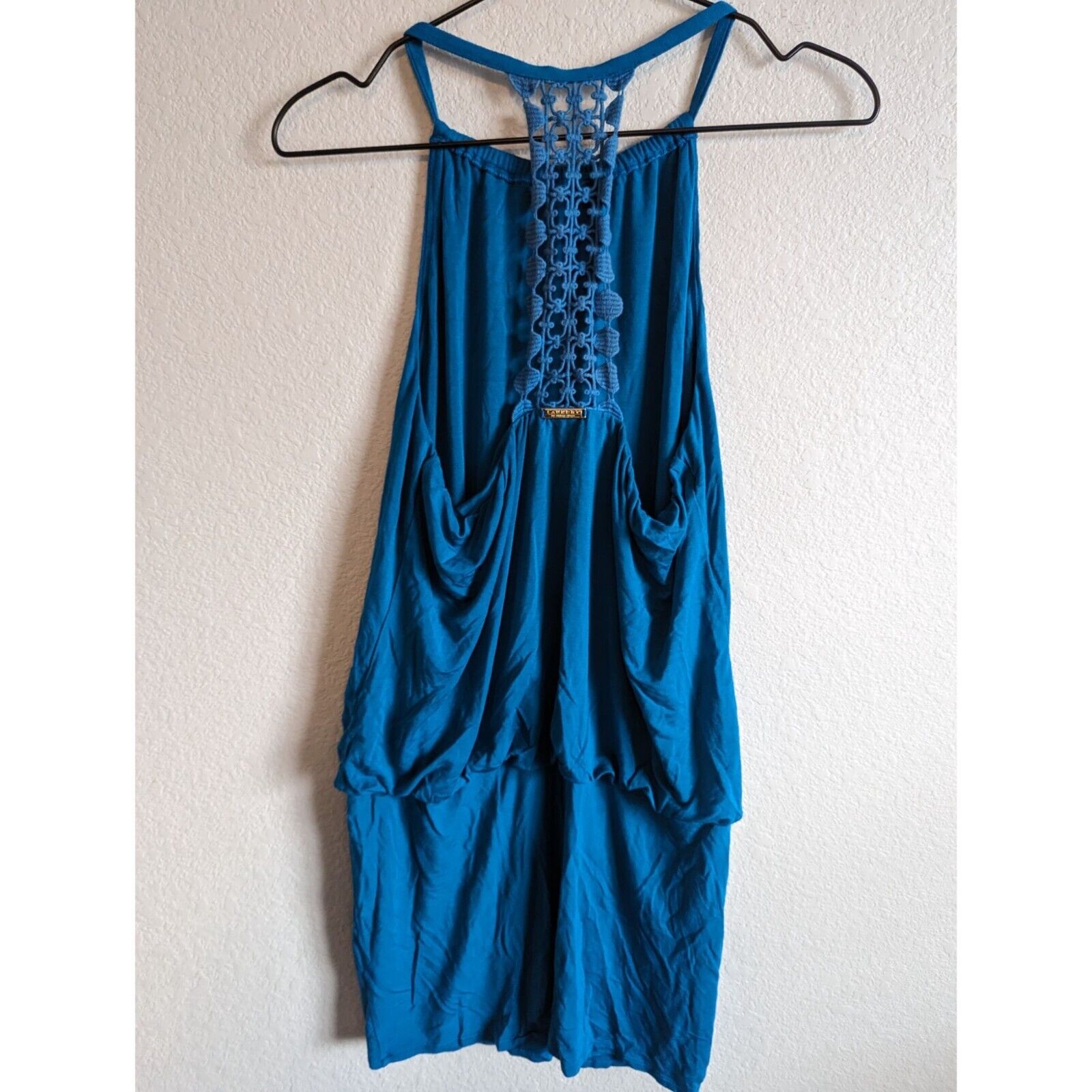 Laundry by Shelli Segal Womens Sz M Mini Dress Blue Crochet Back