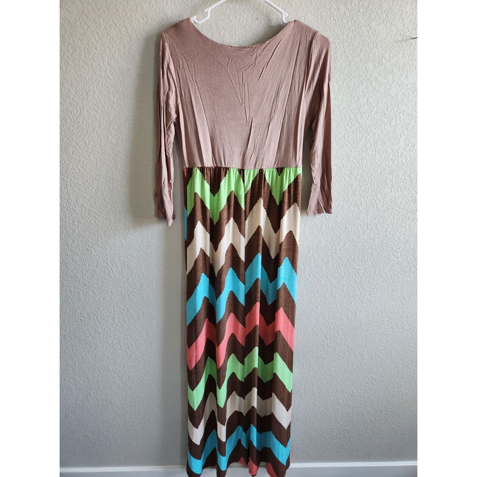 Lillie Avenue Womens Sz M Maxi Shirt Dress Long Sleeve Brown Rainbow Chevron