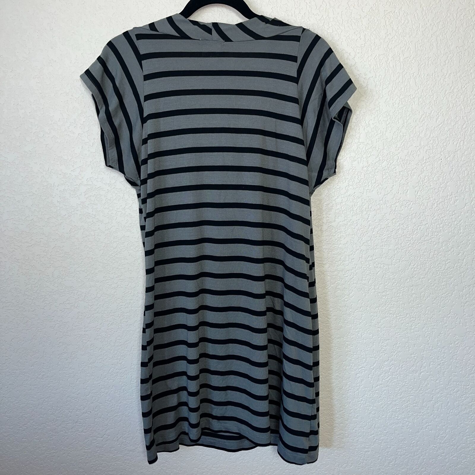 Lilly Lou Womens Sz M Short Sleeve Mini Dress Black Gray Striped