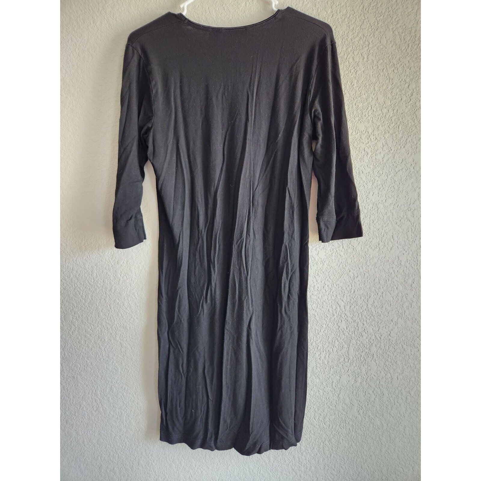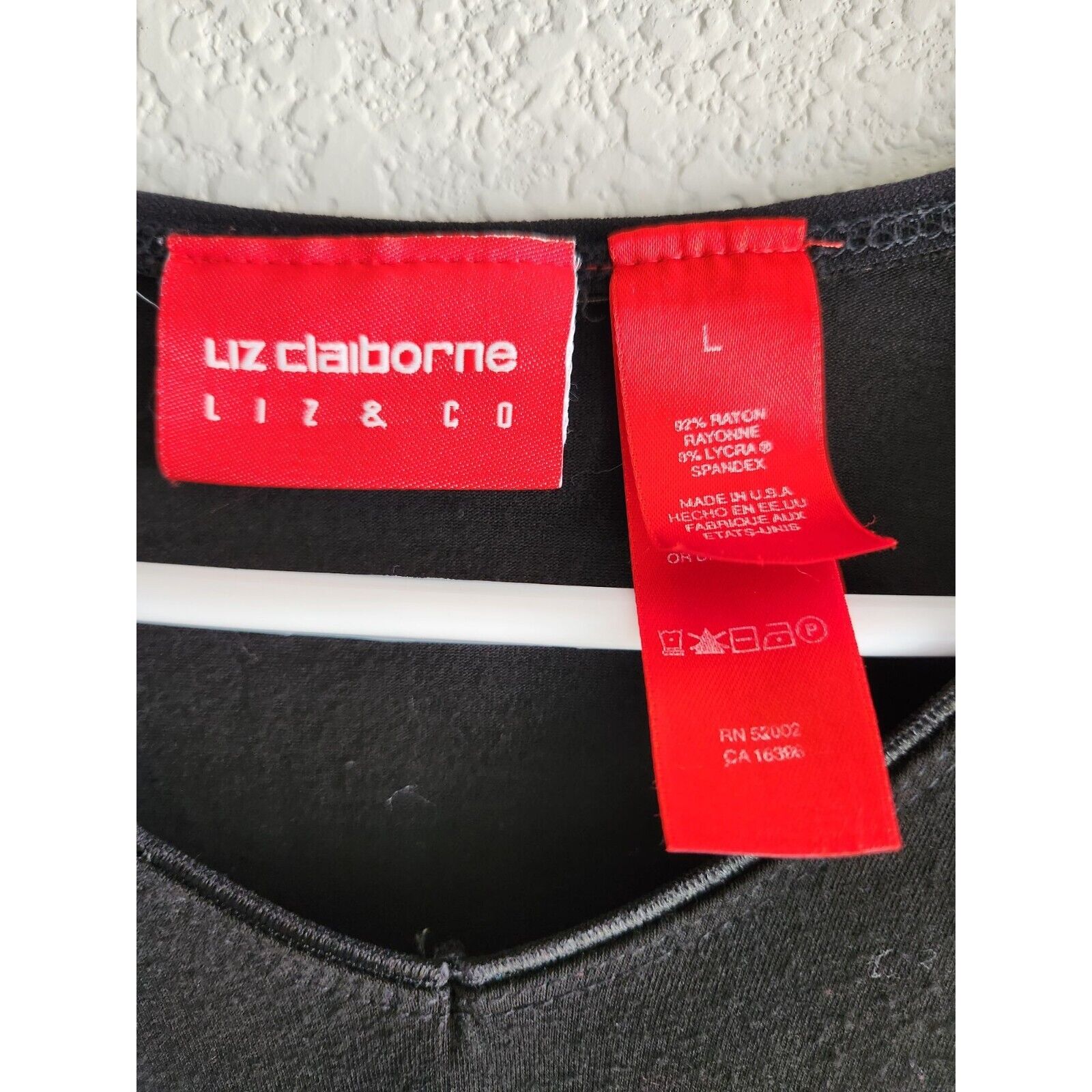 Liz Claiborne Womens Sz L Long Sleeve Shirt Dress Solid Black V Neck
