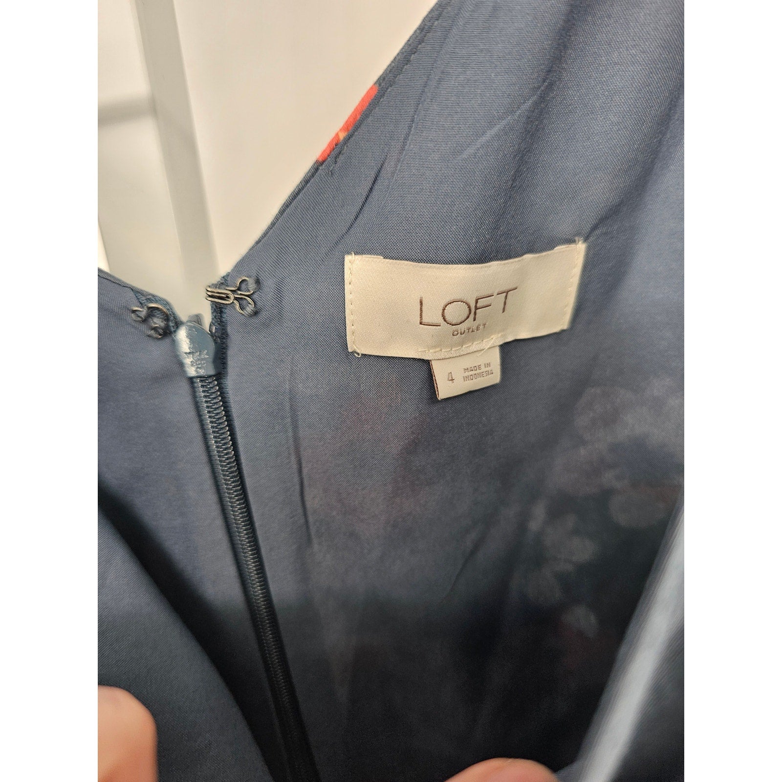 Loft Womens Sz 4 Knee Length Sleeveless Dress Cotton Gray Floral Springtime