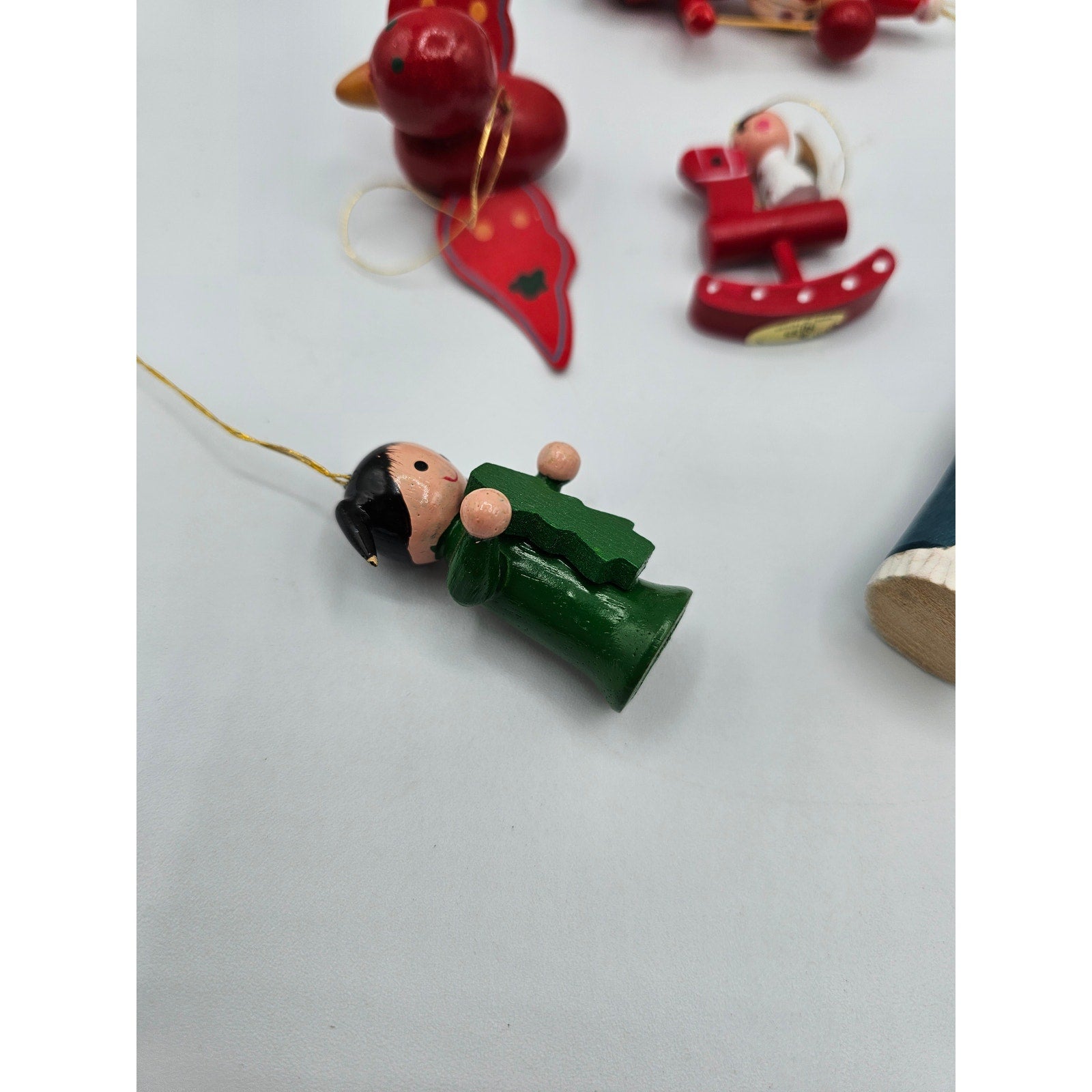 This lot of vintage hand-painted wooden Christmas ornaments includes a variety of unique pieces, such as a bird rocking horse and a Santa figurine. These ornaments are perfect for collectors or for adding a touch of holiday charm to your home decor. Each piece is carefully crafted and painted by hand, making them a one-of-a-kind addition to your collection. Whether you're a fan of antiques or simply love the holiday season, this lot of vintage Christmas ornaments is sure to impress.