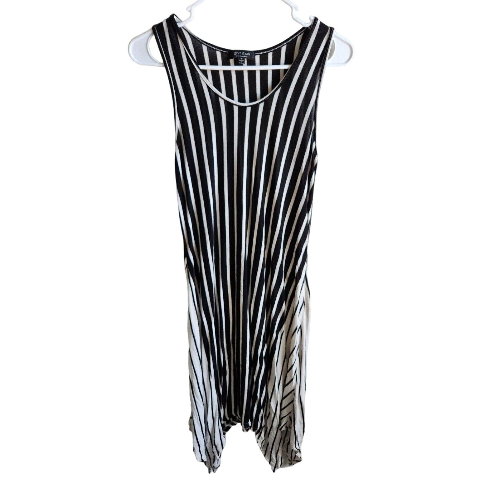 Love Ryan LA Sz M Handkerchief Hem Maxi Dress Black White Vertical Stripes