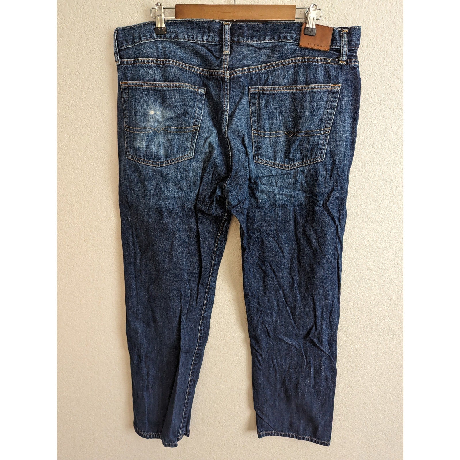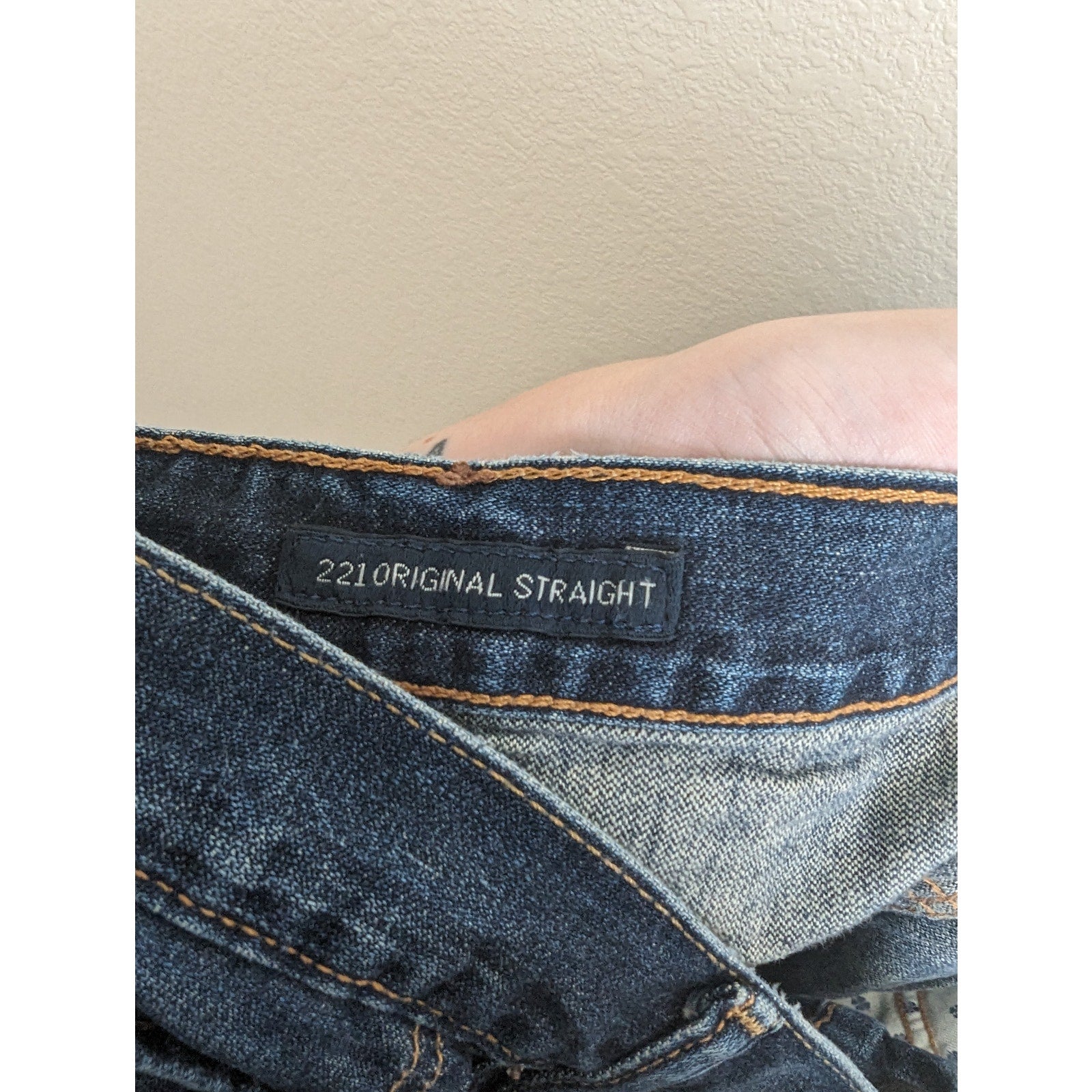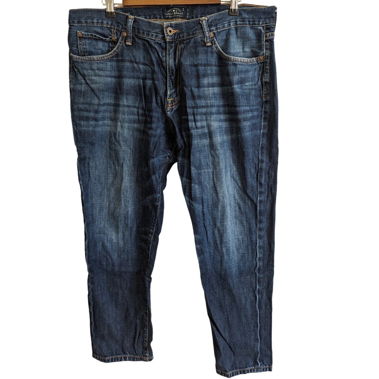 Up for sale is a pair of Lucky Brand men's jeans in size 38x30. These 221 Original Straight Leg jeans have a dark wash blue color that is perfect for any casual occasion. The design is timeless and versatile, making it a great addition to any wardrobe. The jeans have been carefully inspected and are in excellent condition, with no visible flaws or defects. They have been pre-washed and are ready to wear. Don't miss out on the opportunity to add these stylish and comfortable jeans to your collection.