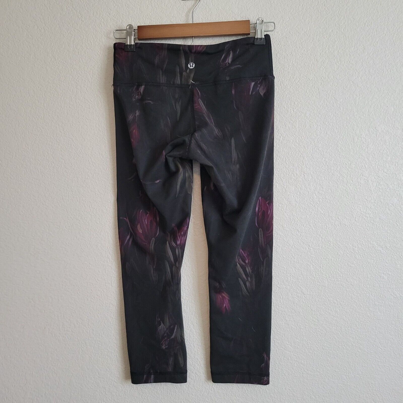 Lululemon Womens Sz 4 Black Floral Wunder Under Crop Leggings