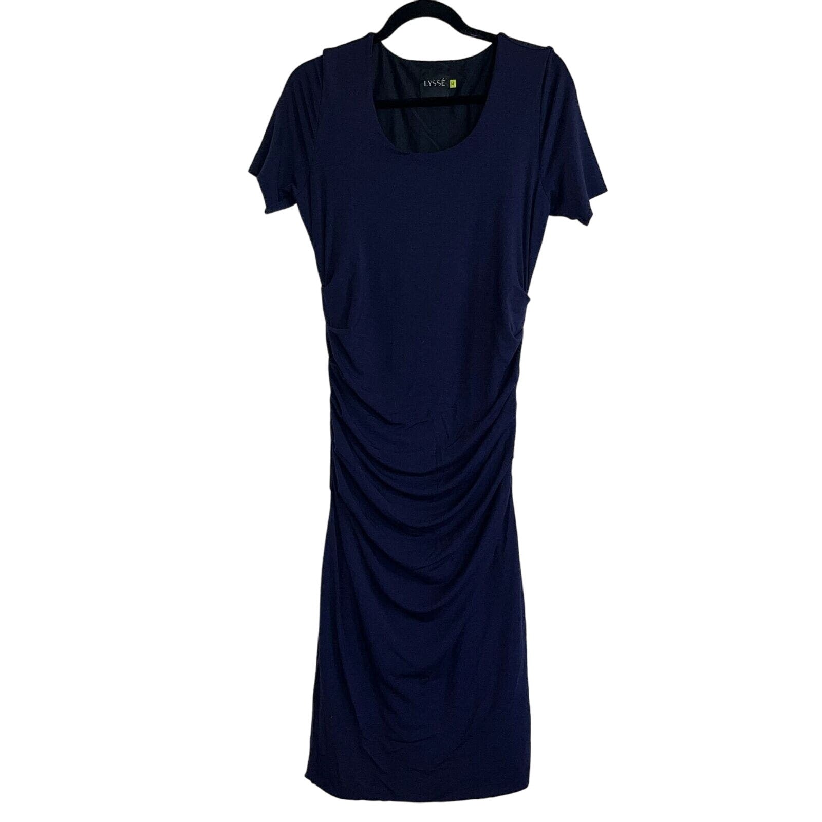 Lysse Womens Sz M Short Sleeve Navy Blue Dress Midi Slimming Career