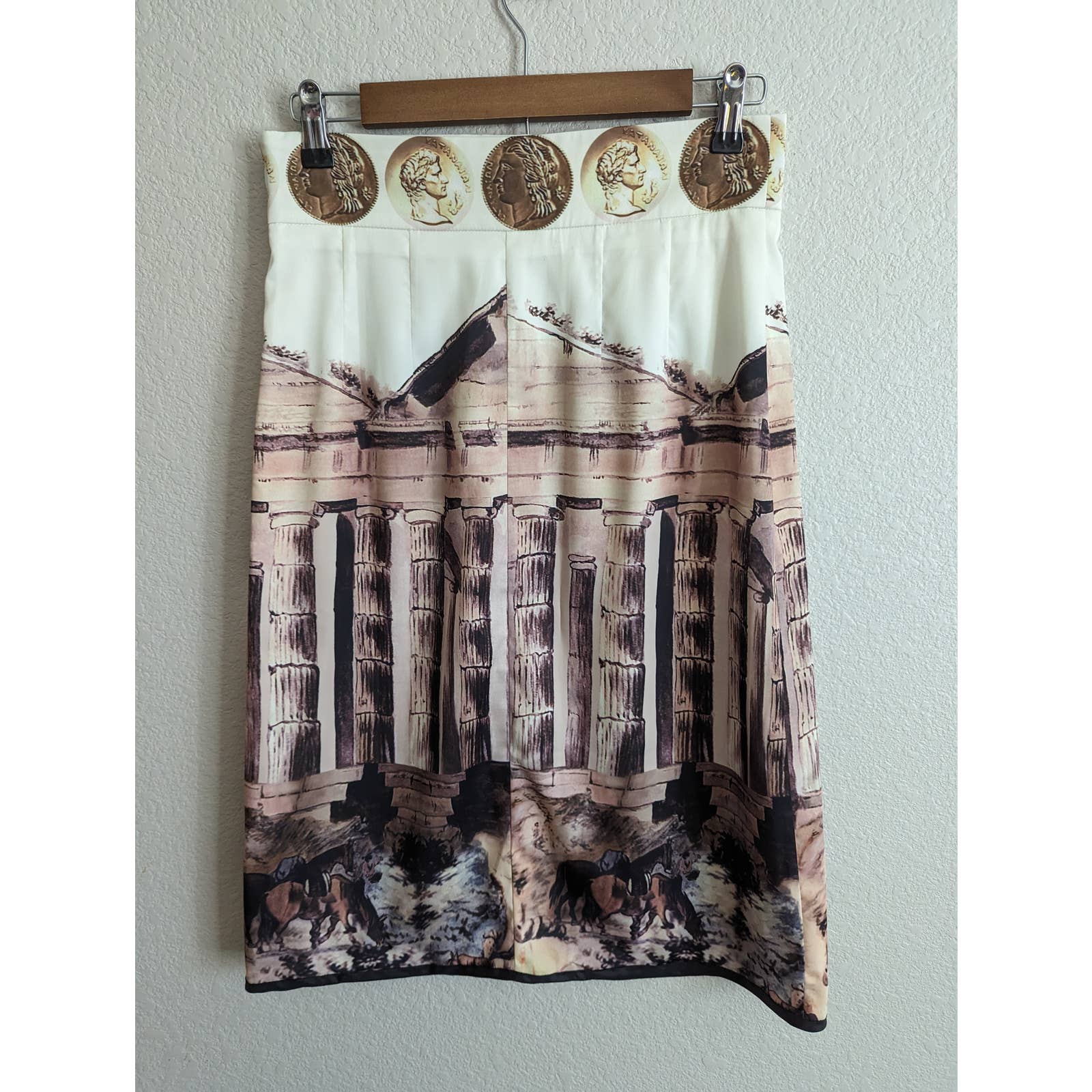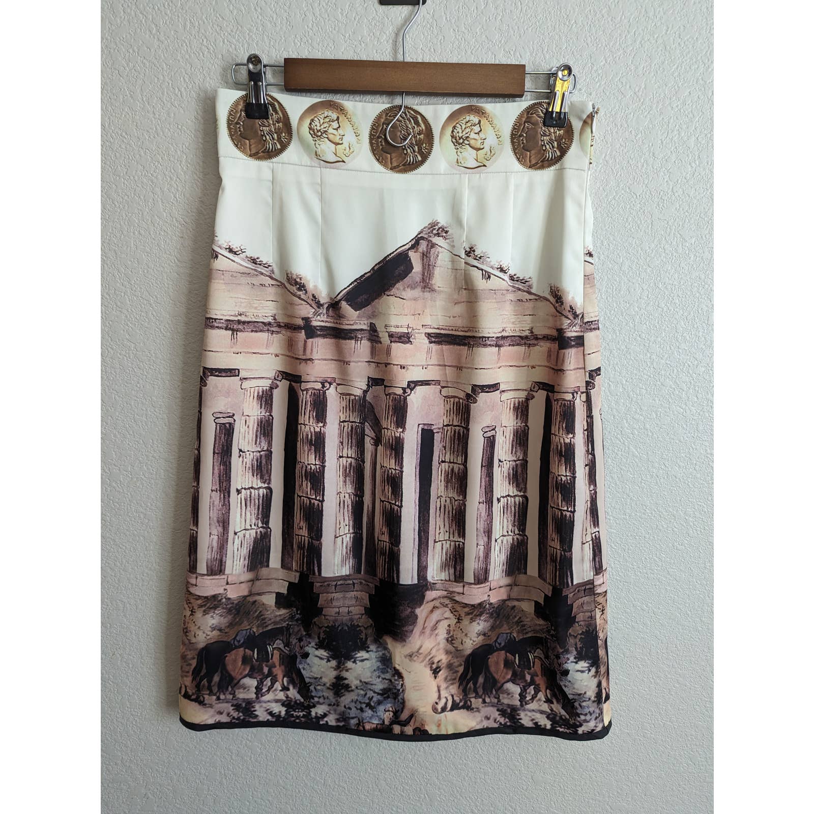 Marc Feier Womens Sz L Below Knee Skirt Greece Greek Emblem