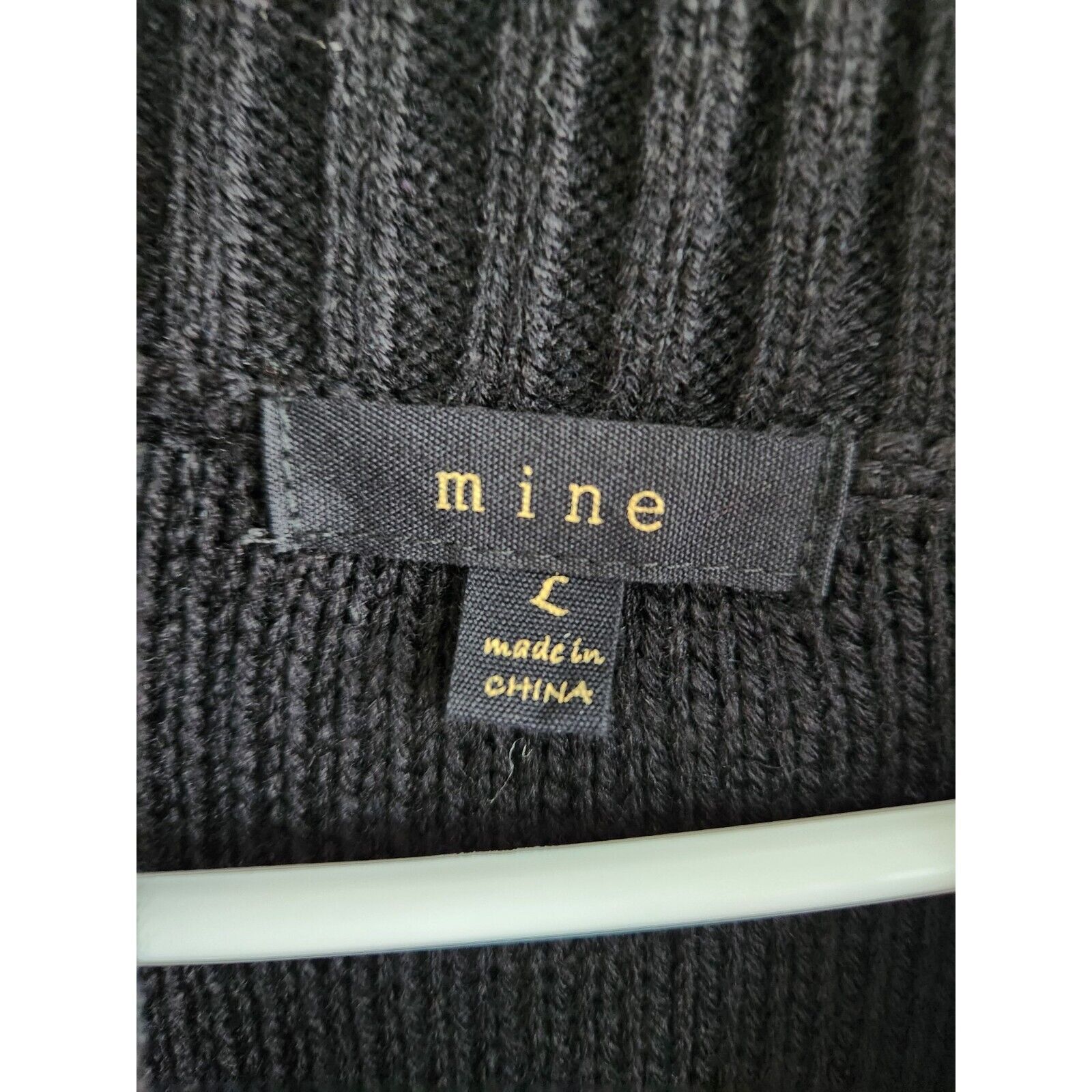 Mine Womens Sz L Cowl Neck Sweater Dress Short Sleeve Cable Knit Black