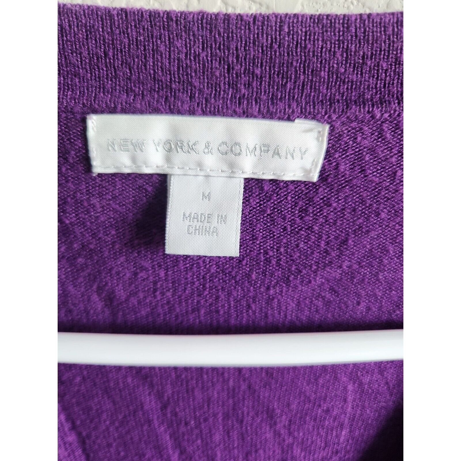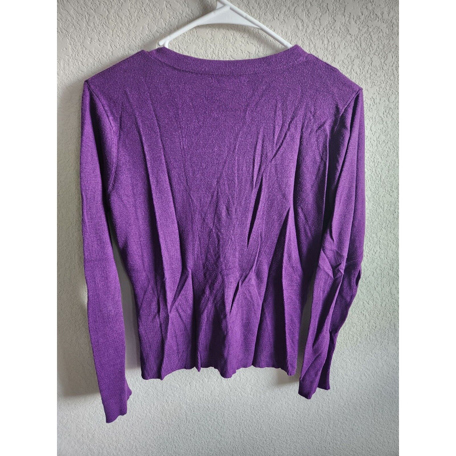 New York & Company Womens Sz M Knit Long Sleeve Shirt Purple V Neck