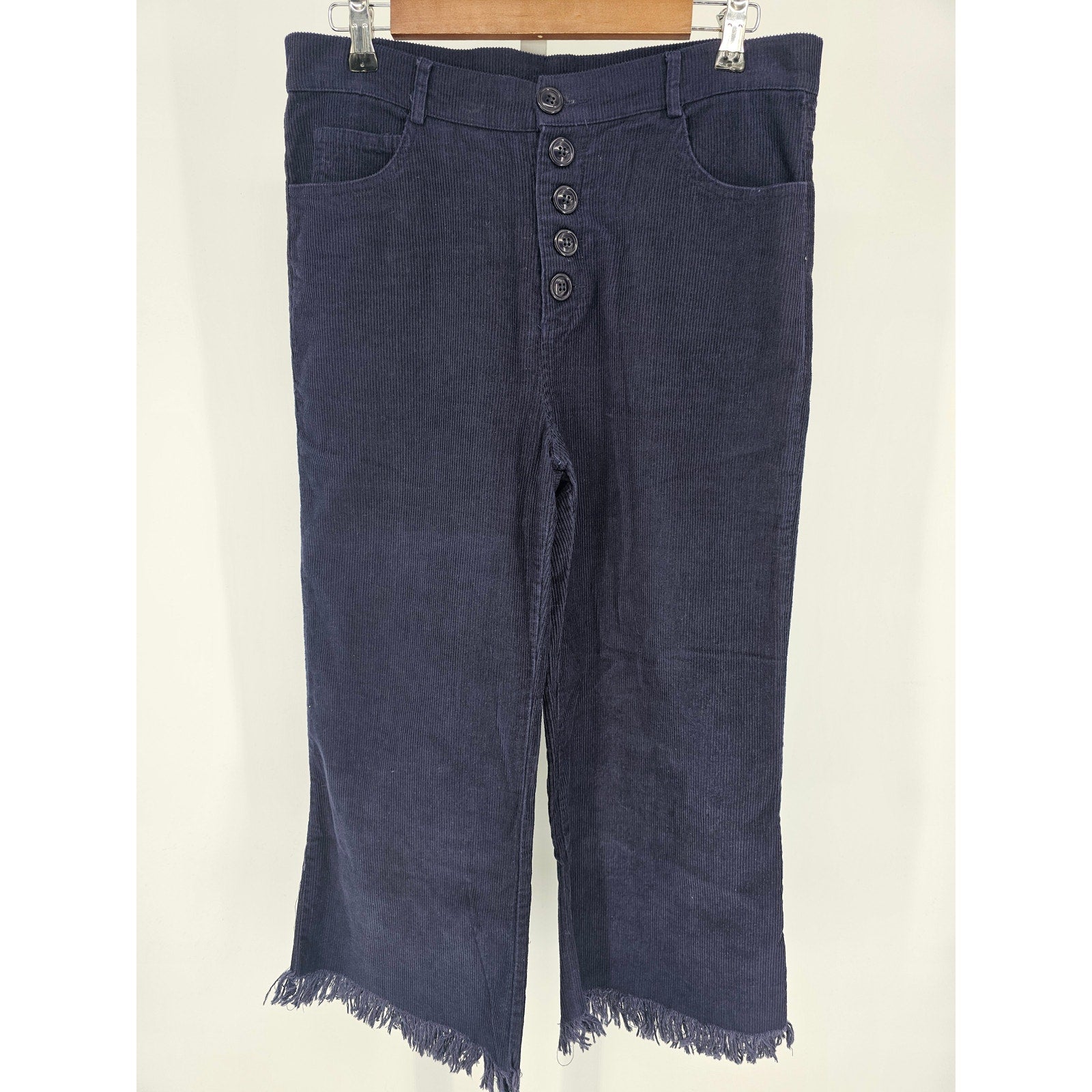 Newbury Kustoms Womens Sz L wide Leg Raw Hem Corduroy Pants Purple Cropped
