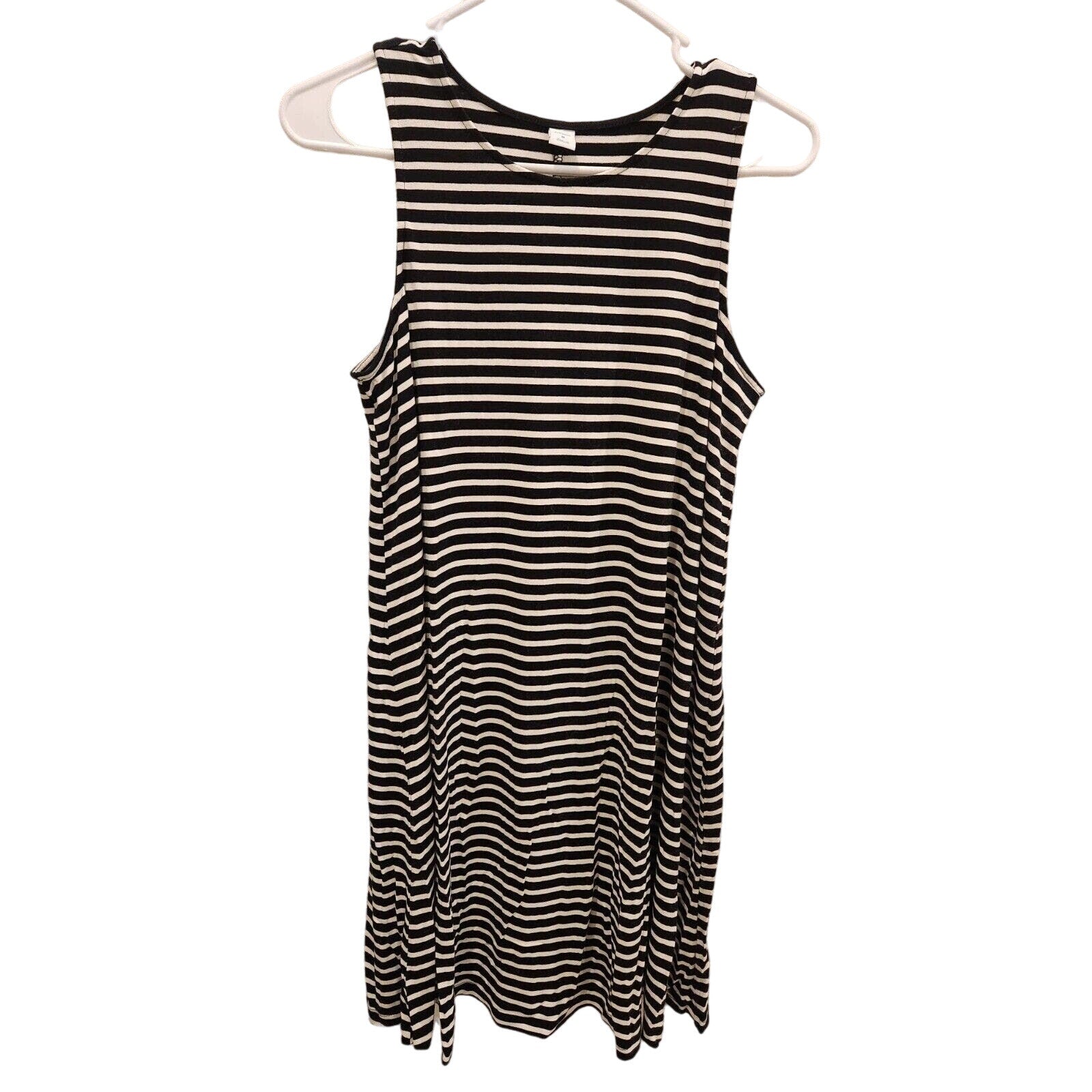 Old Navy Womens Sz M Knee Length Shift Dress Black White Striped Sleeveless