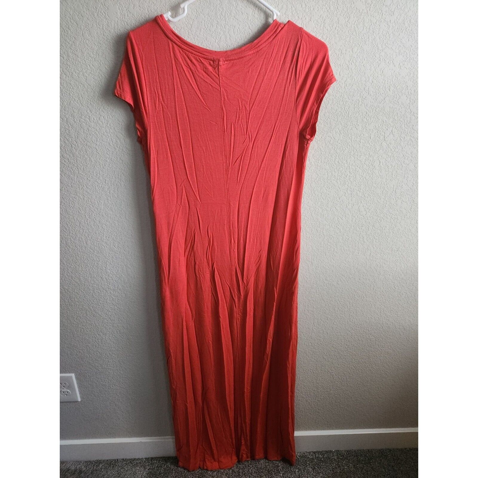 Old Navy Womens Sz M Maxi Length Shirt Dress Coral Pink Orange Jersey Knit