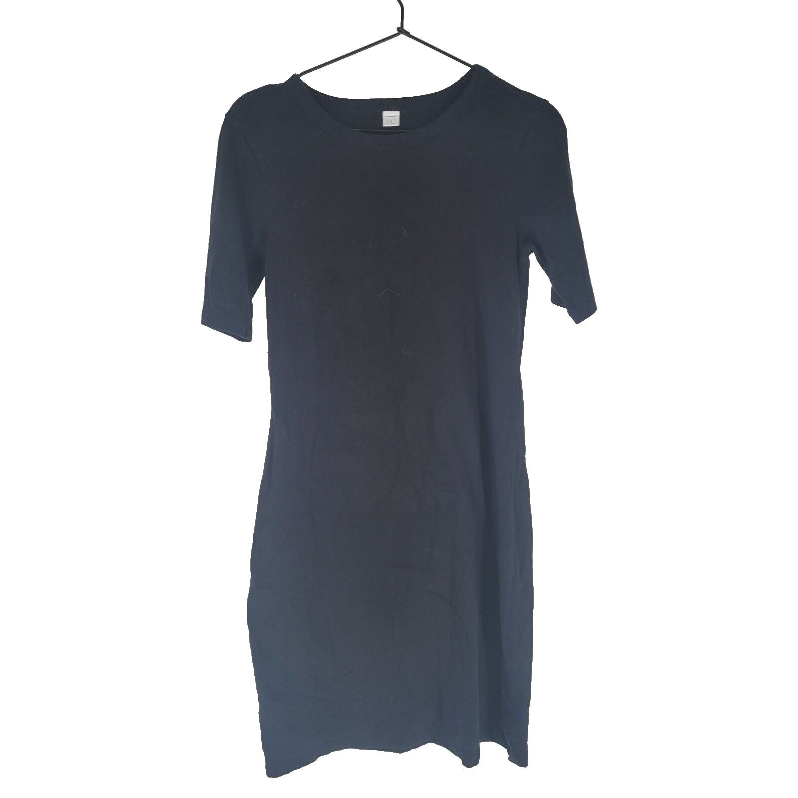 Old Navy Womens Sz S Knee Length Shirt Dress Solid Black Short Sleeve