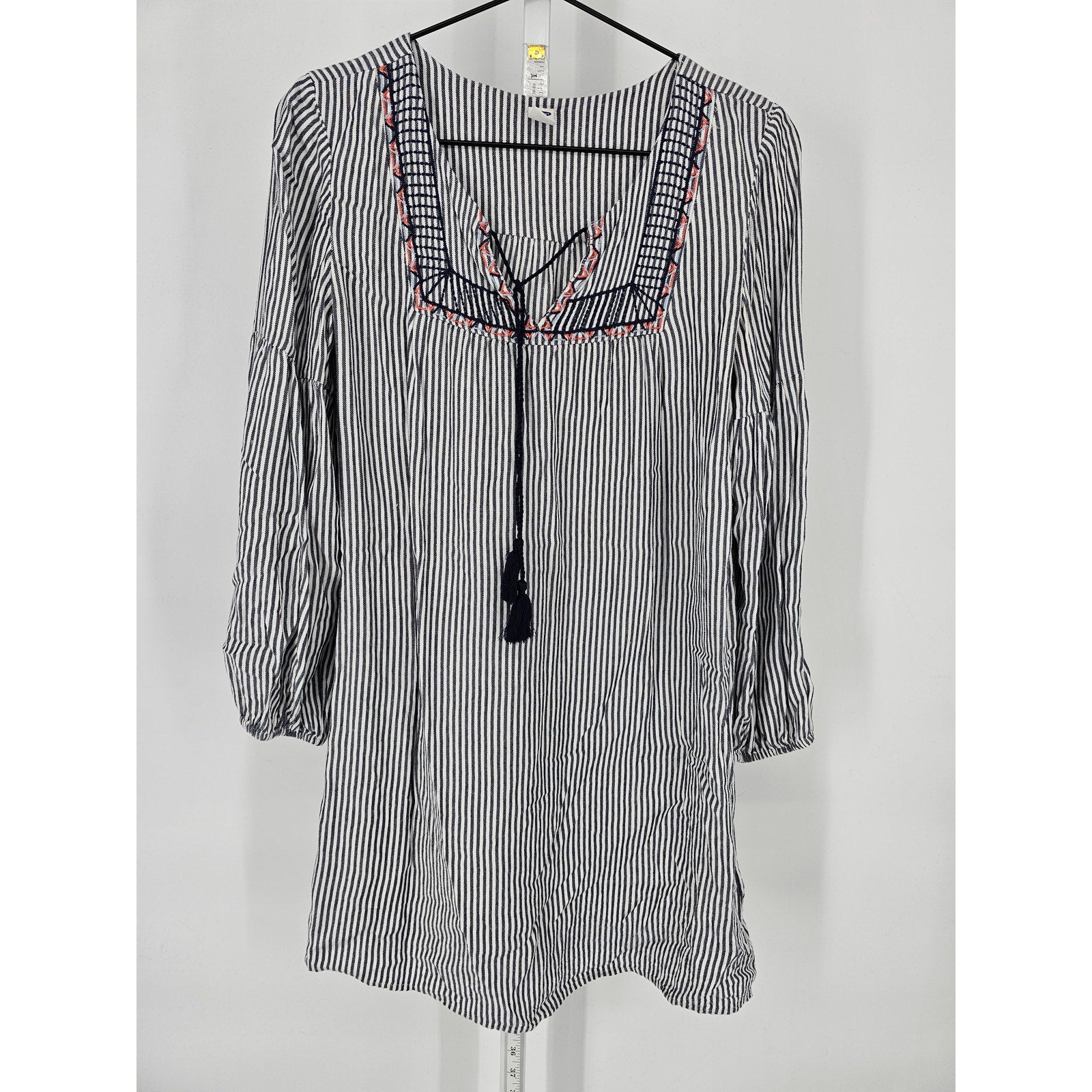 Old Navy Womens Sz S Long Sleeve Knee Length Peasant Style Dress Striped Tassel