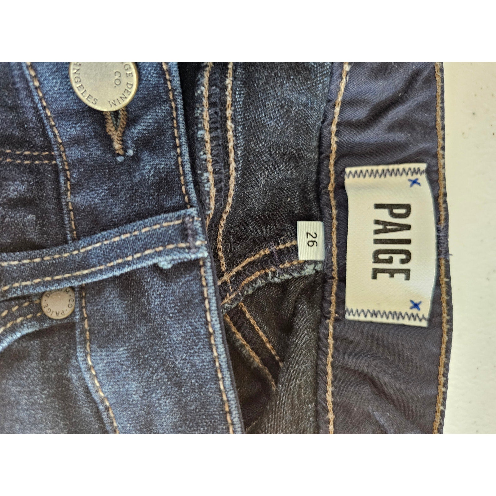 Looking for a stylish pair of jeans to match your fashion taste? Look no further than these Paige Jeans! These jeans are made for women and come in a size 26 with a beautiful skyline skinny design. The dark wash blue color adds a touch of elegance to your wardrobe and can be easily paired with a variety of tops and shoes. The jeans are well-made and durable to withstand frequent wear. Get ready to turn heads with these stunning Paige Jeans!