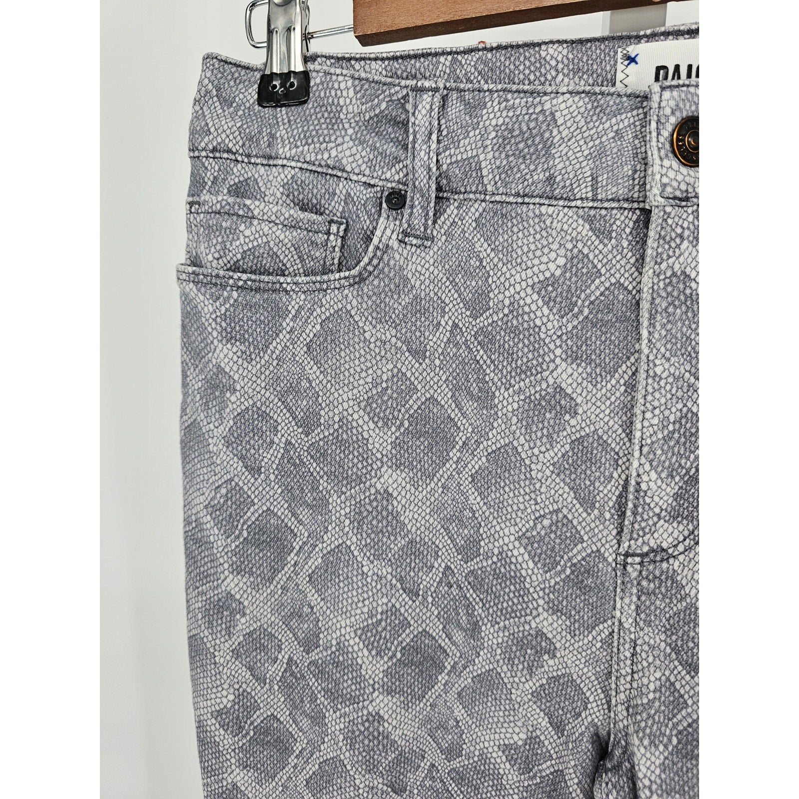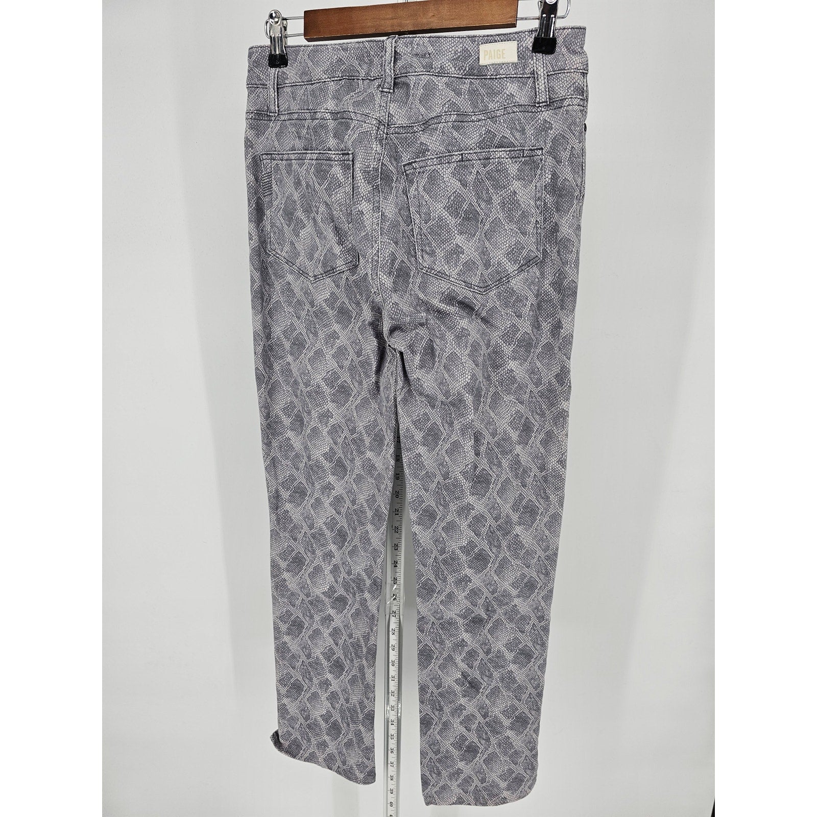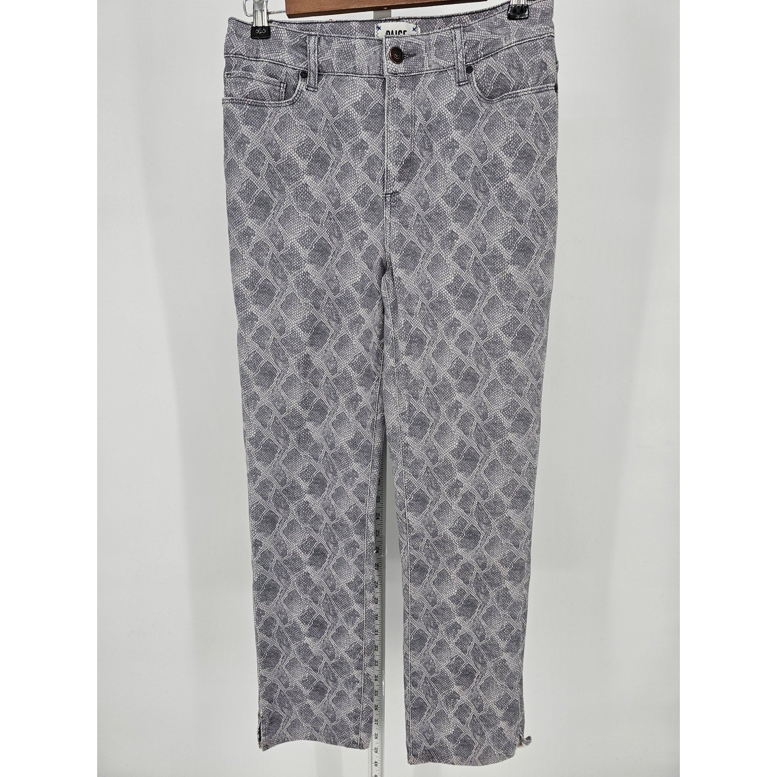 Elevate your wardrobe with these stunning Paige Women's Hoxtom Slim Leg Jeans. The unique snakeskin print adds a touch of exotic flair to any outfit. Made with high-quality materials, these jeans provide both style and comfort. Perfect for a night out or a casual day around town, these jeans will quickly become a staple in your wardrobe. The slim leg design offers a flattering fit, while the size 28 ensures a perfect fit for your body type. Add these Paige Women's Hoxtom Slim Leg Jeans to your collection today.