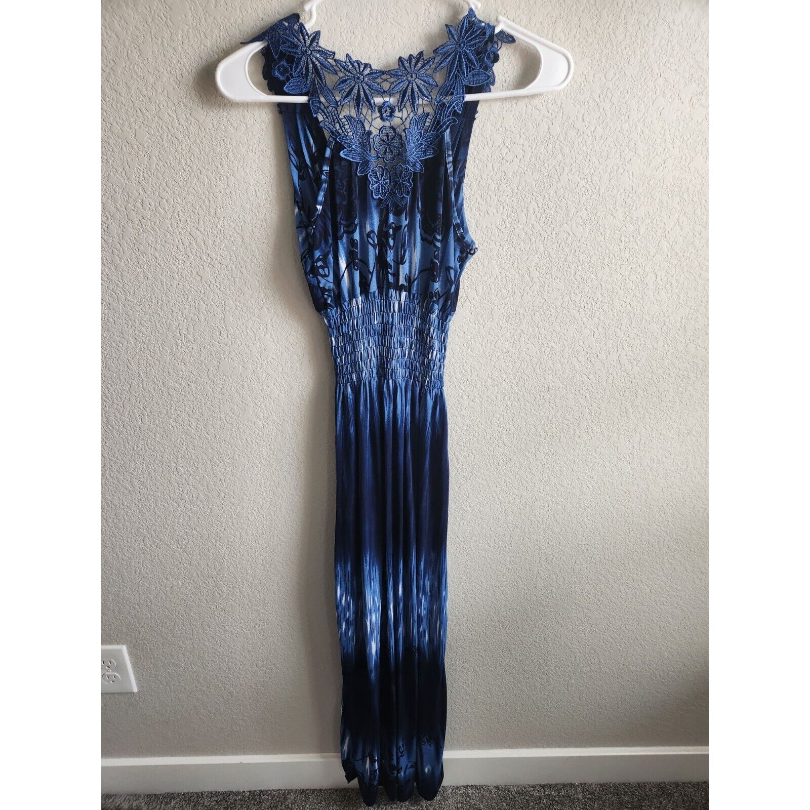 Paris Pink Womens Sz L Maxi Dress Blue White Tie Dye Lace Back Vtg