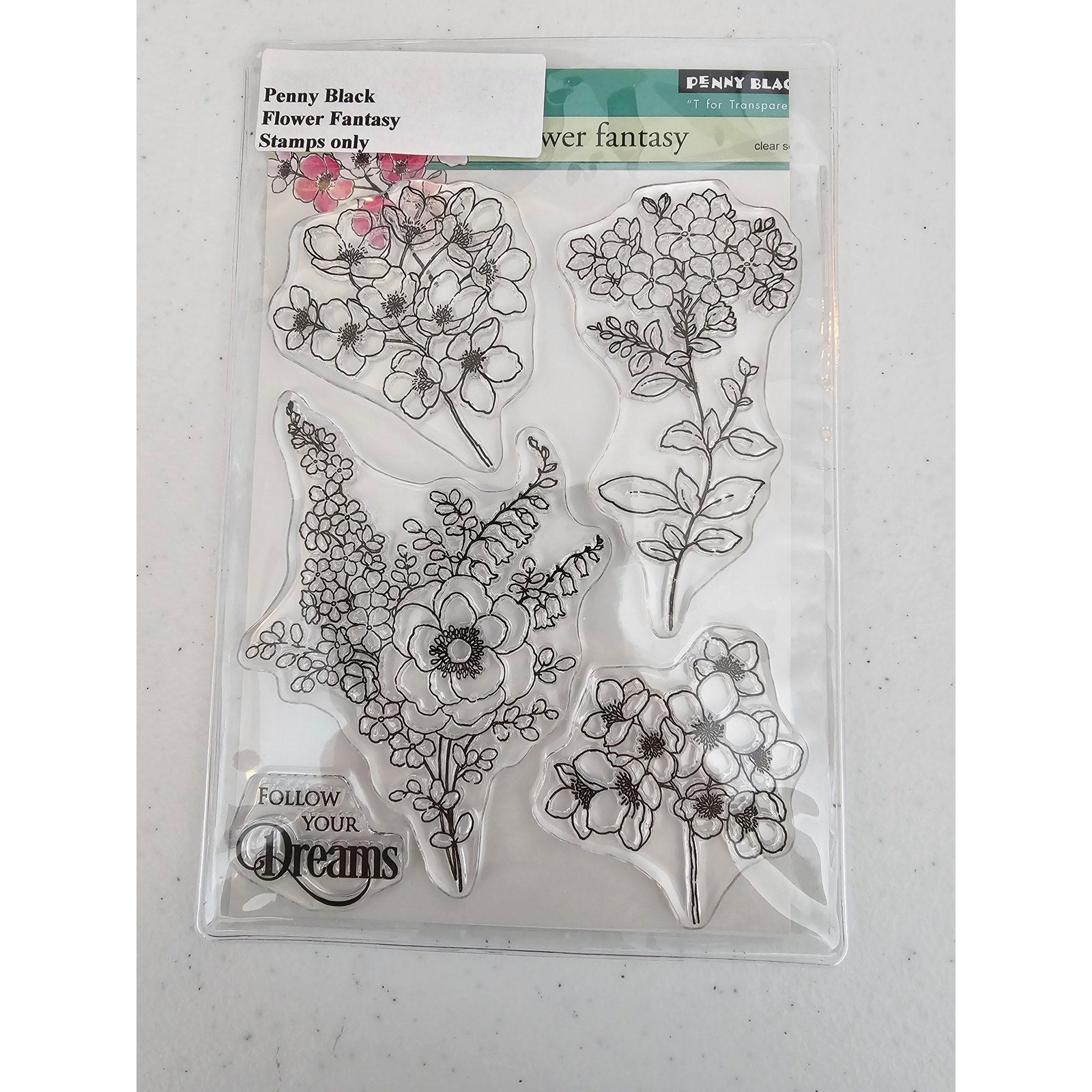 Penny Black Clear Rubber Stamp Set Flower Fantasy Follow Your Dreams