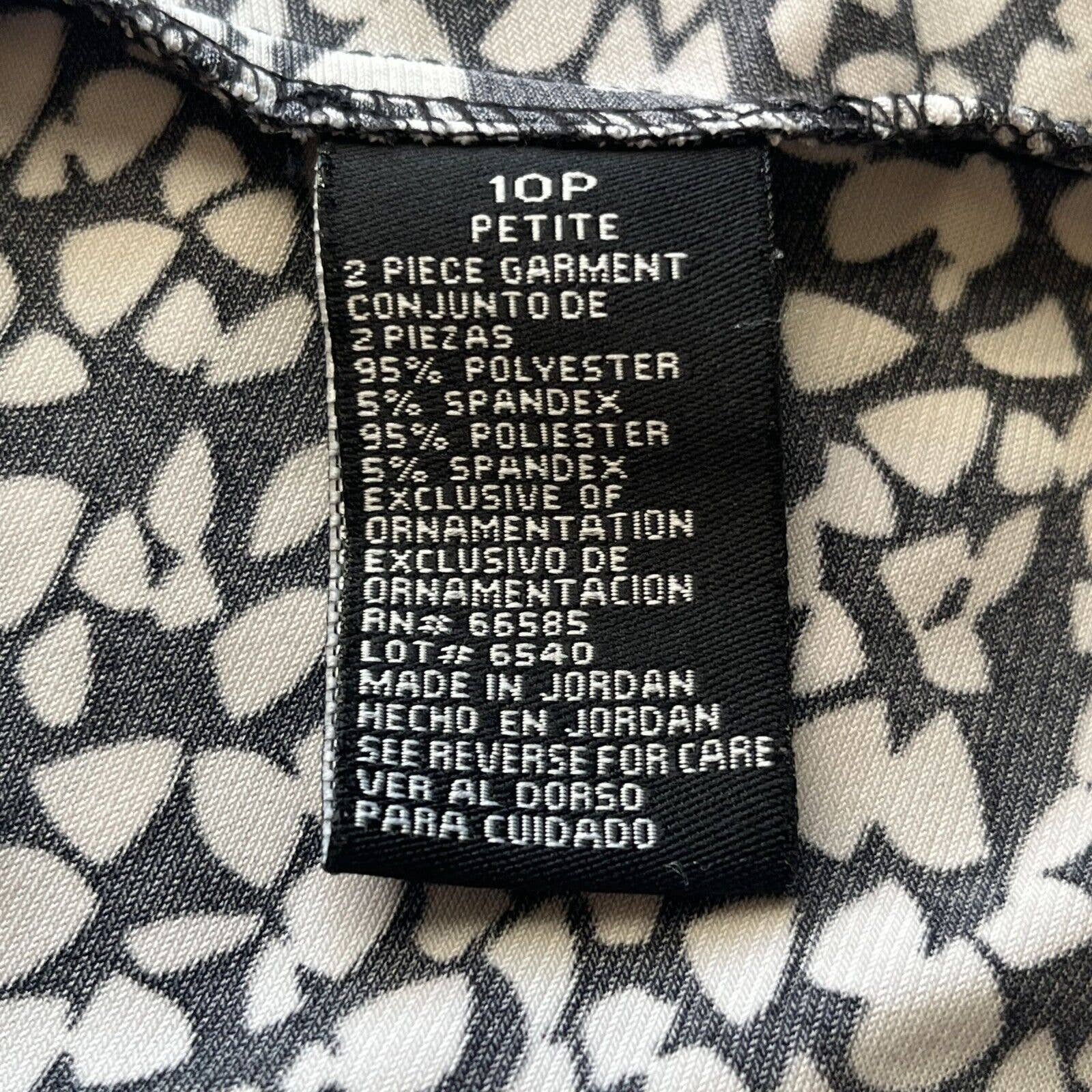 Perceptions Petite Womens Sz 10P Midi Dress Black White Belted Career