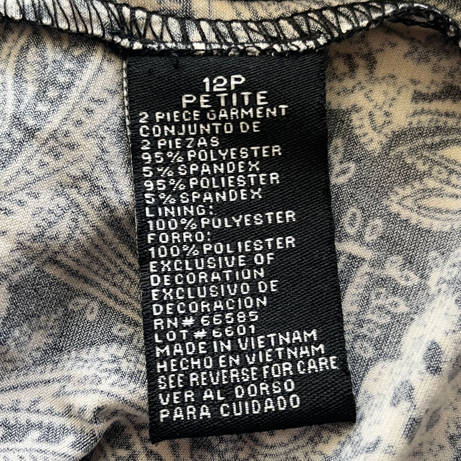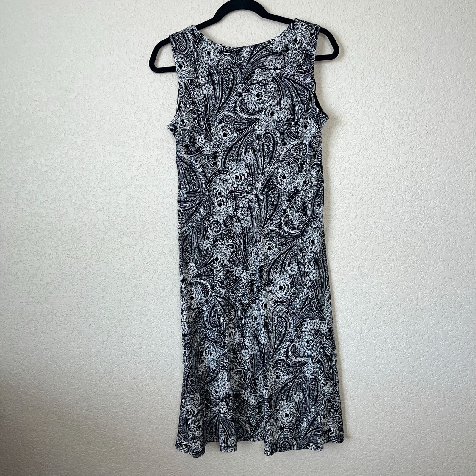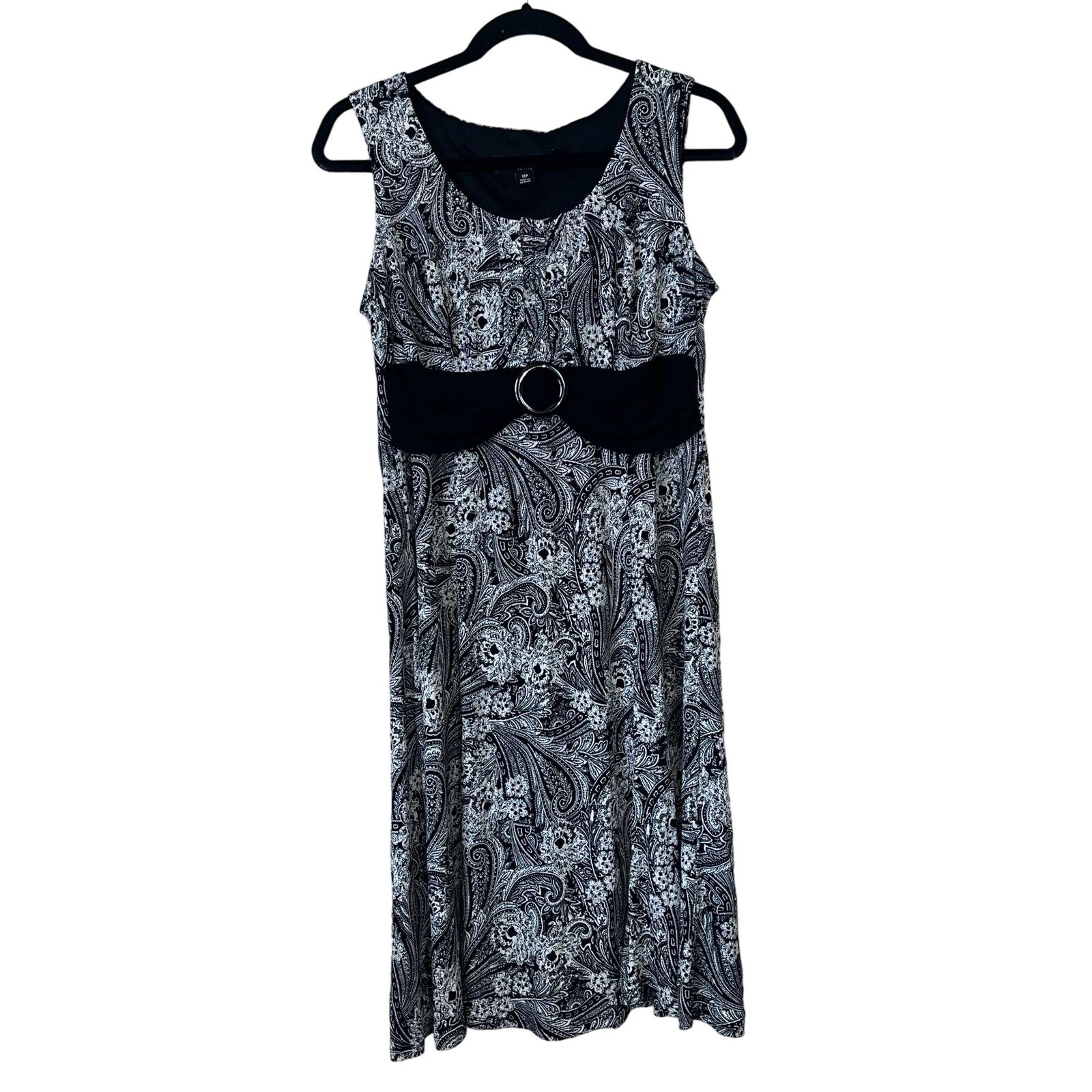 Perceptions Petite Womens Sz 12P Black and White Midi Dress Belted
