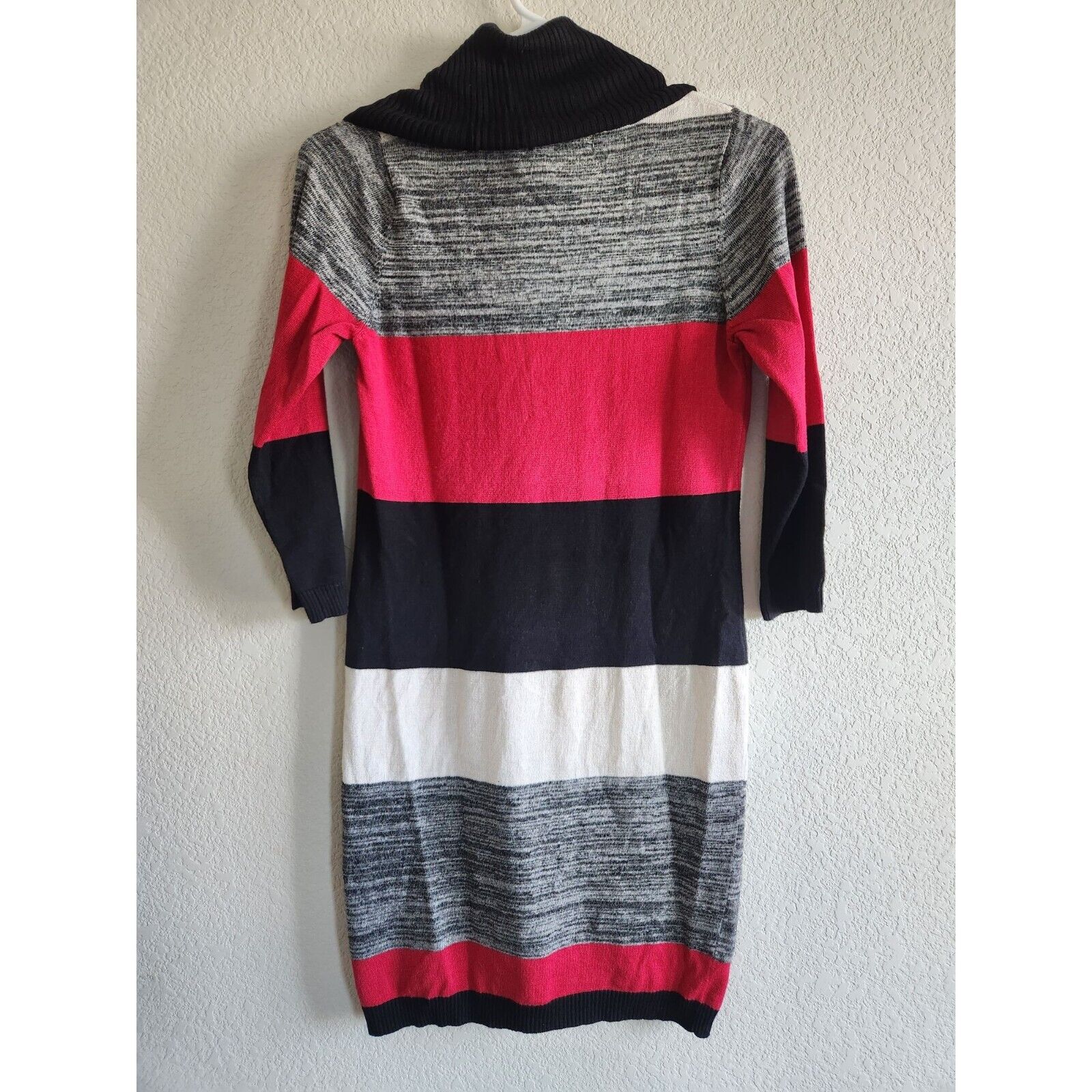 Pink Rose Womens Sz M Sweater Dress Cowl Neck Red Gray Black Striped