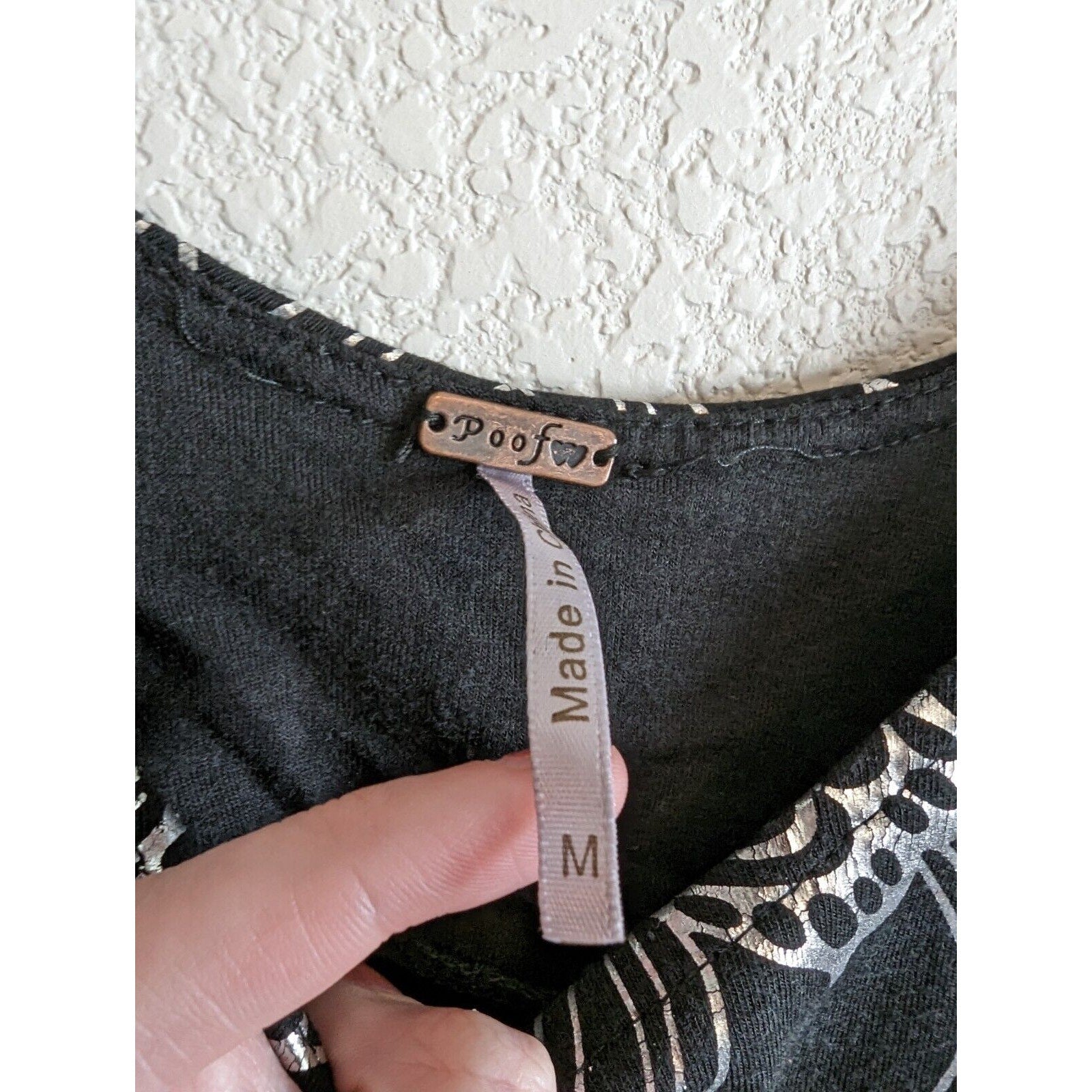 Poof Womens Sz M Mini Cocktail Dress Short Sleeve Black and White Print