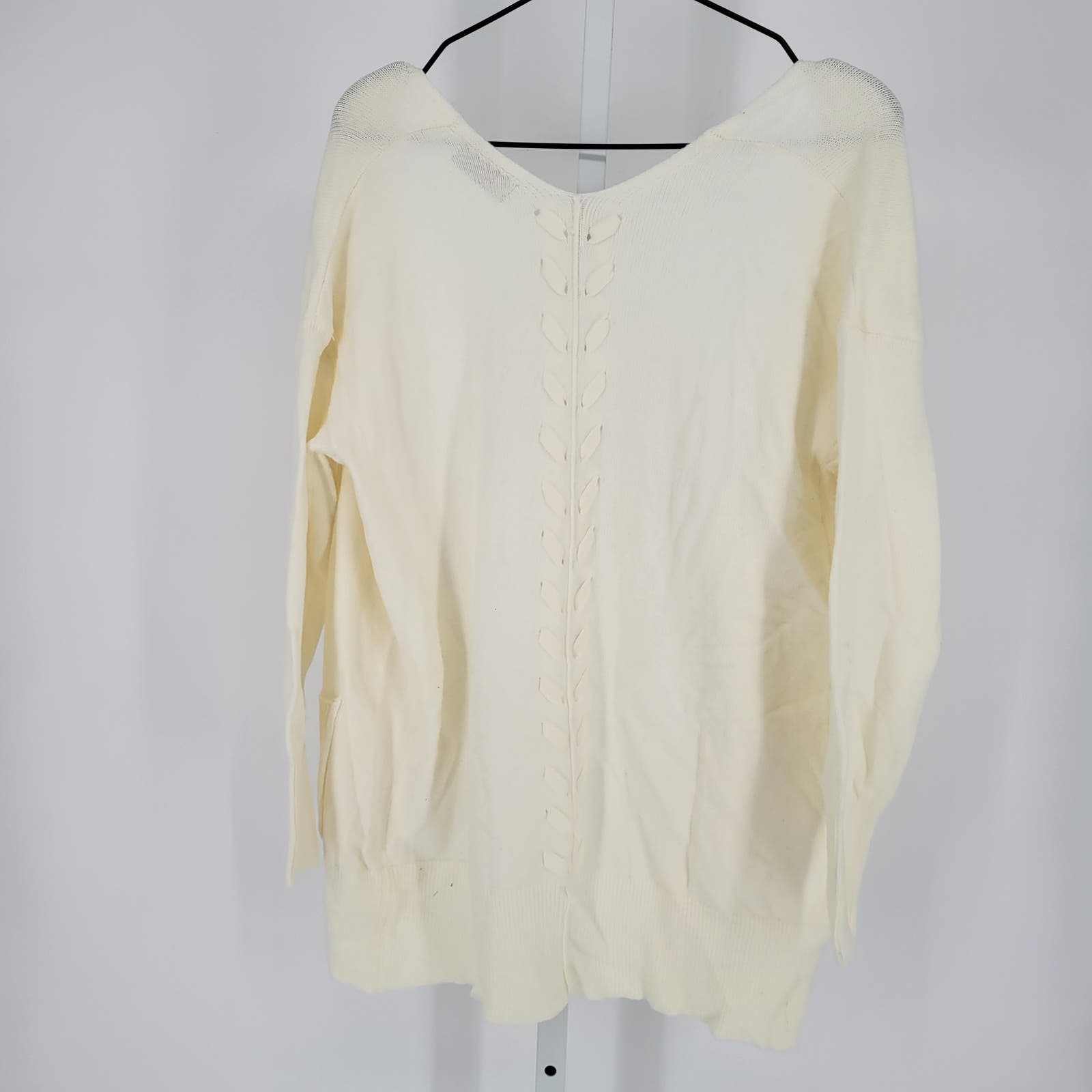 Poof Womens Sz M Slouchy Open Front Cardigan Sweater Cream Braided Back