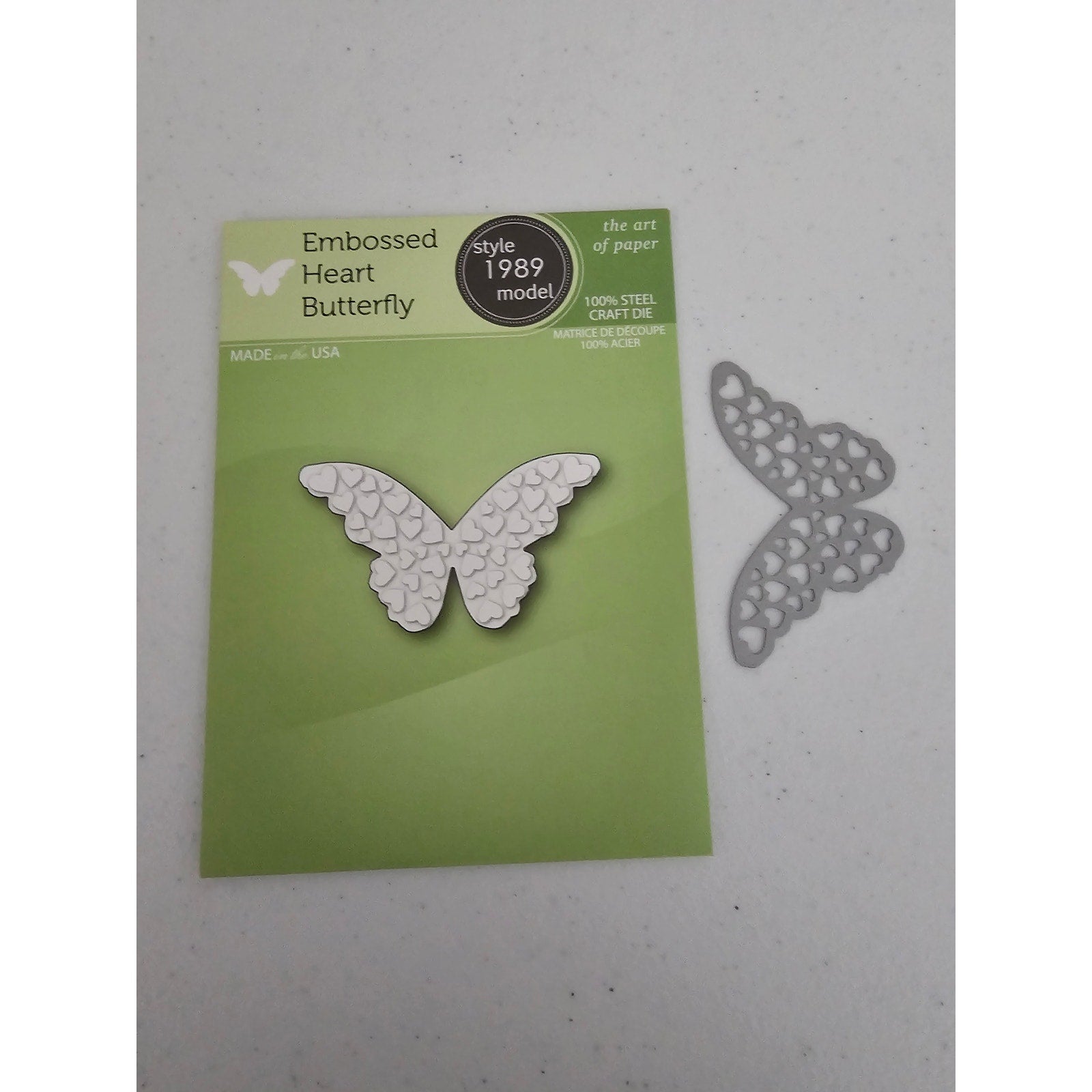 This steel craft die features a beautiful design of an embossed heart with a butterfly. It is perfect for adding a unique touch to any crafting project. Made by Poppy Stamps, this die is of high quality and is made to last. It is a great addition to any collection of craft supplies. Use it to create beautiful cards, scrapbook pages, and other creative projects.